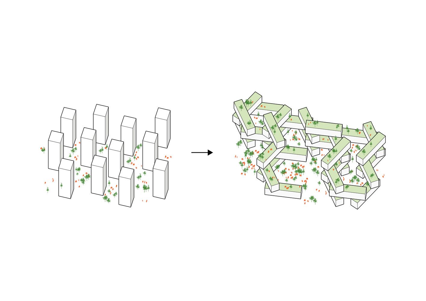 In actual buildings, however, the stacked boxes need extra support for guaranteed stability. After all, if you exert a horizontal load on the structure of cardboard boxes or if a strong wind blows, it will fall. The extra structural support can be provided by means of a concrete or steel structural core and skeletal steel frames or cantilevers.