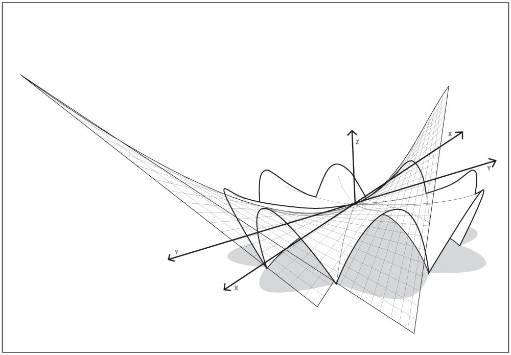A shell is a large curved surface with a very slight thickness in comparison to its length and width. The shell can be used as a roof for light structures or it can envelop the entire structure. The shell touches the ground at one or more points, transferring the loads on its surface to the ground through these points.
