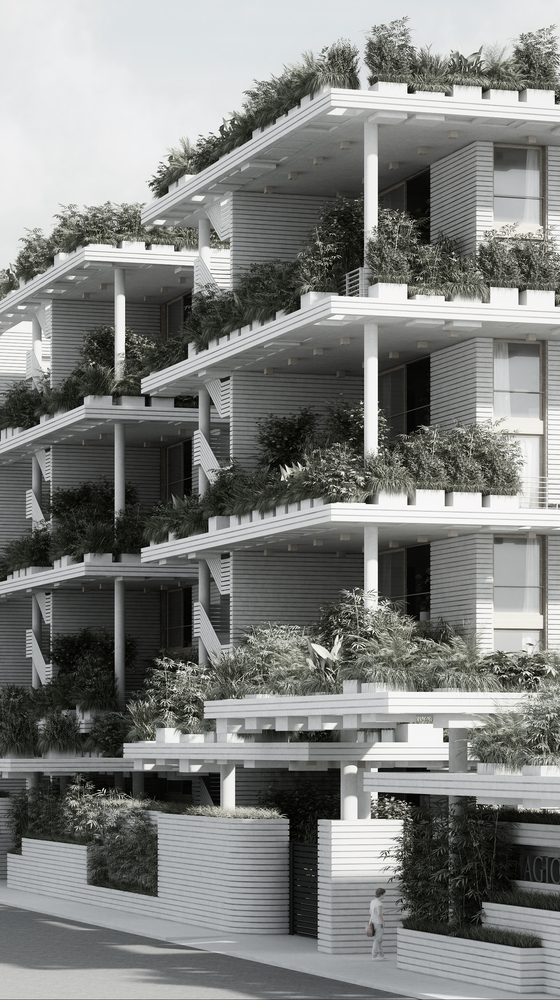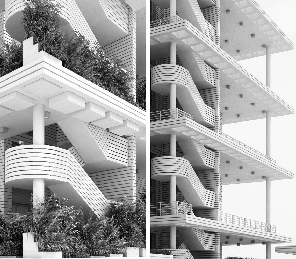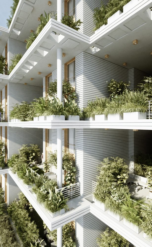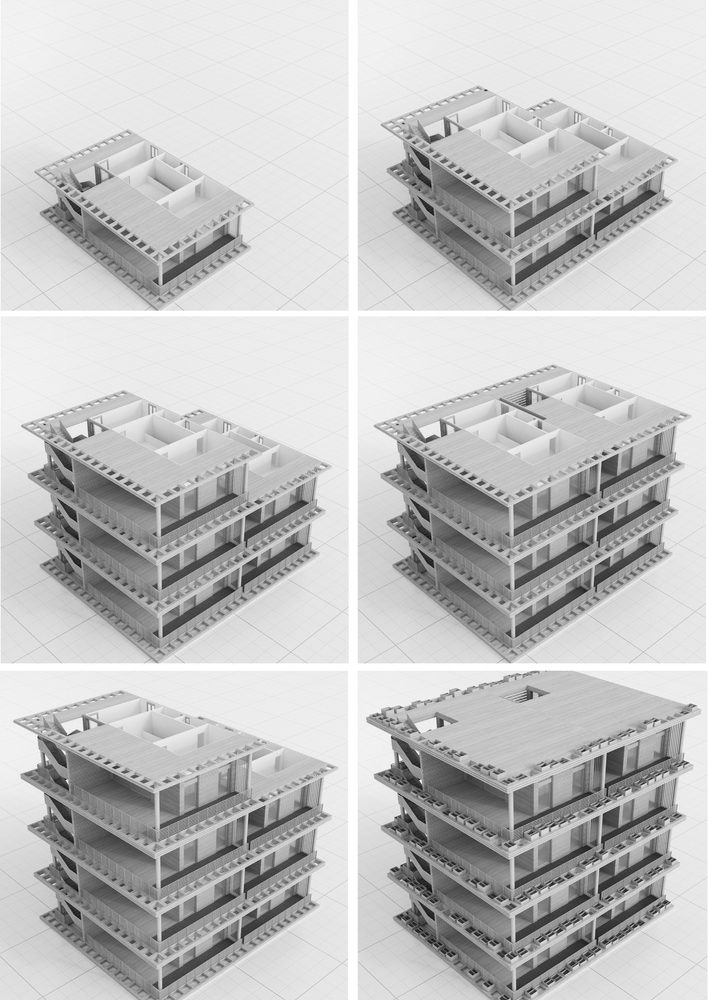 By choosing their own elements, we offer the homeowners a tool to become the designers of their individual apartment. Penda explains the concept as “A kind of individualism one would have in building his own house. Therefore we divide a tower in its separate elements: the structure, walls, facade, ceiling & floors, infrastructure, balconies and plants. Inspired by a modular shelf, the structural grid and the infrastructure are the only constant elements in the building.”