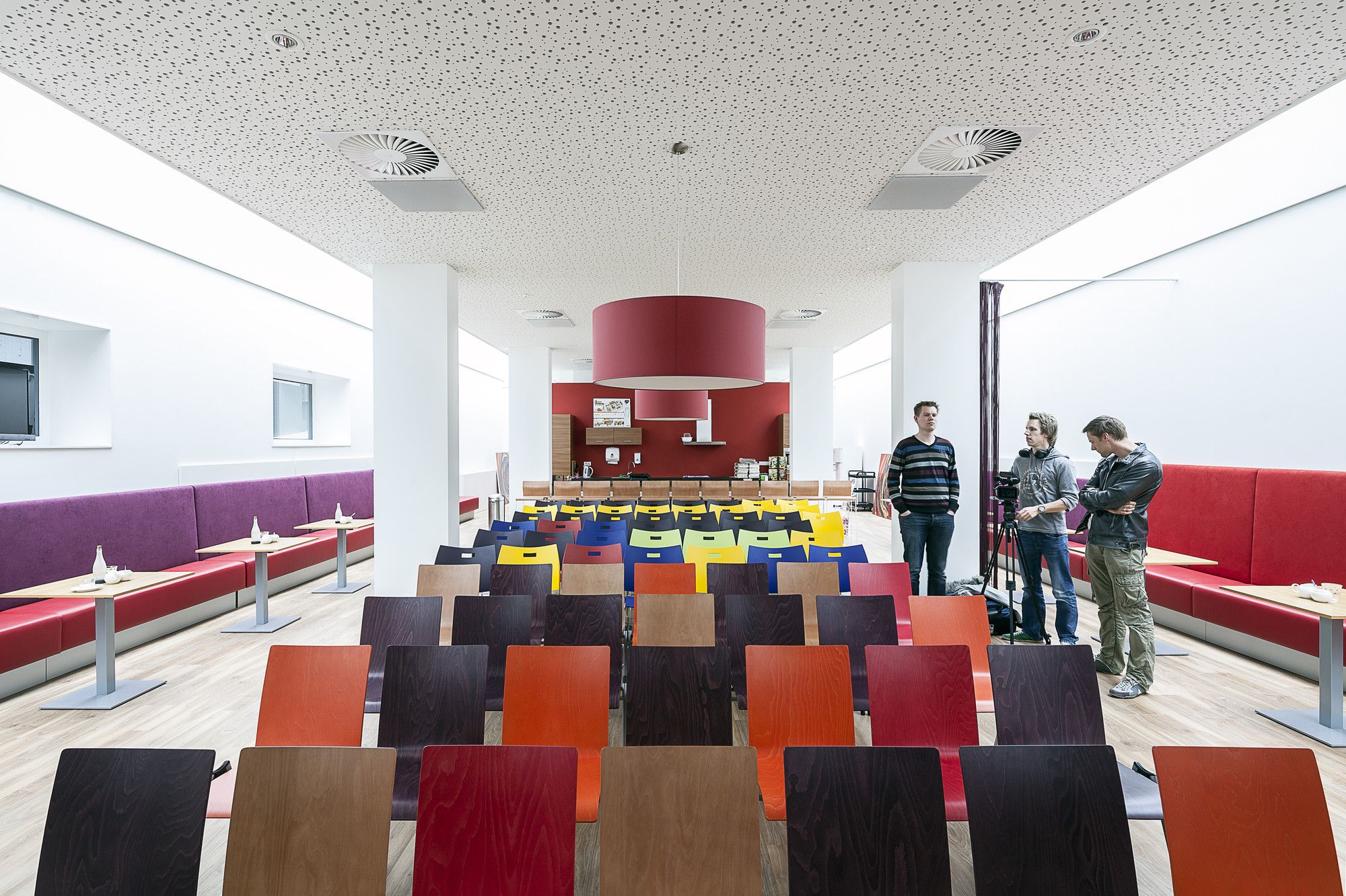 The first floor is home to offices, meeting rooms and treatment facilities. On the second, divided into six unique groups, are bedrooms and livings spaces for 48 girls. These rooms surround a roof terrace which exists as a protected outdoor space for the girls to use without having to leave the safety of the building. Montesano discribes this space in terms of a patio, saying: