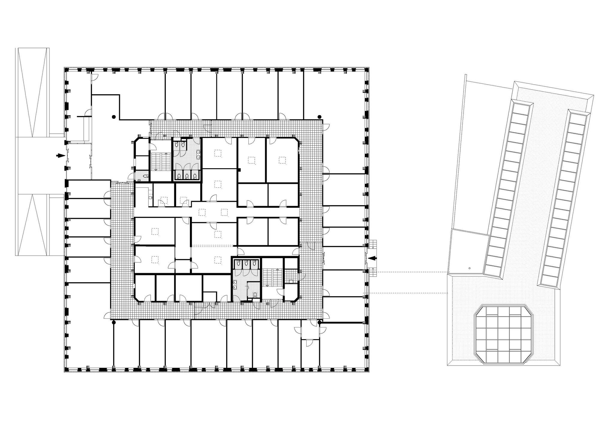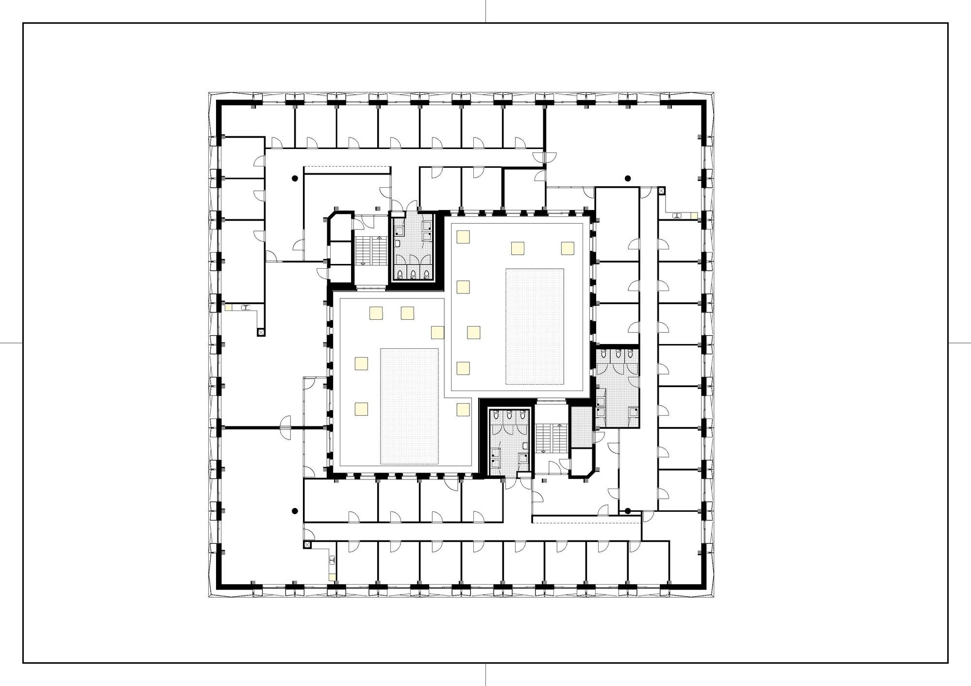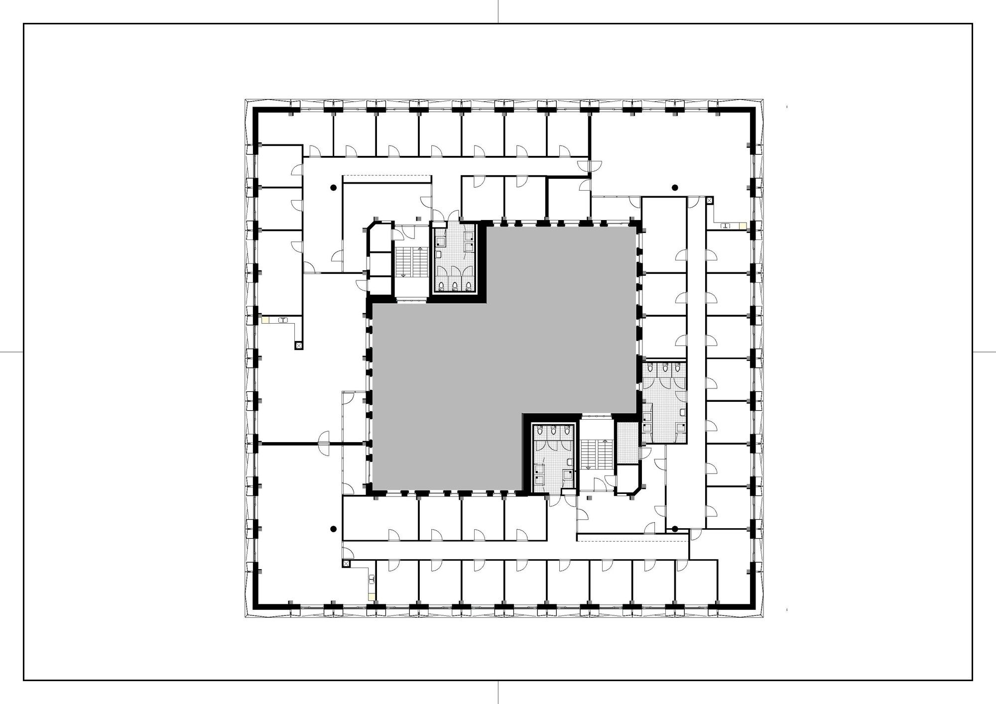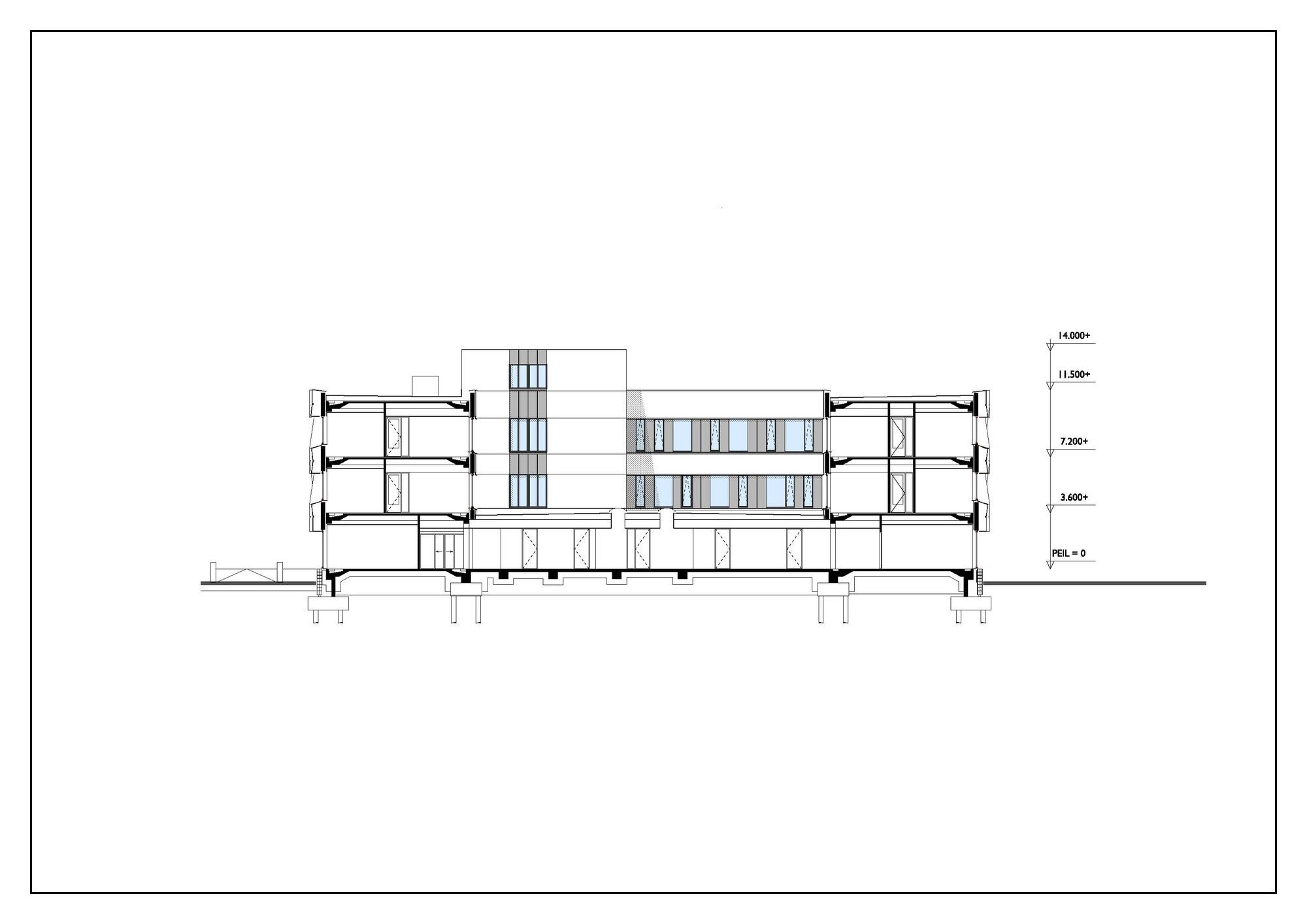 What is revolutionary about the ‘Veilige Veste’, is that this is the first large office block in the Netherlands to be renovated according to the Passive House standard. ‘Passive House’ is a standard for energy efficiency in a building, reducing its ecological footprint. It results in ultra-low energy buildings that require little energy for space heating or cooling. In this case, the fact that the former police stations’ substructure was placed outside the building, meant an enormous energy abuser to be dealt with.”]