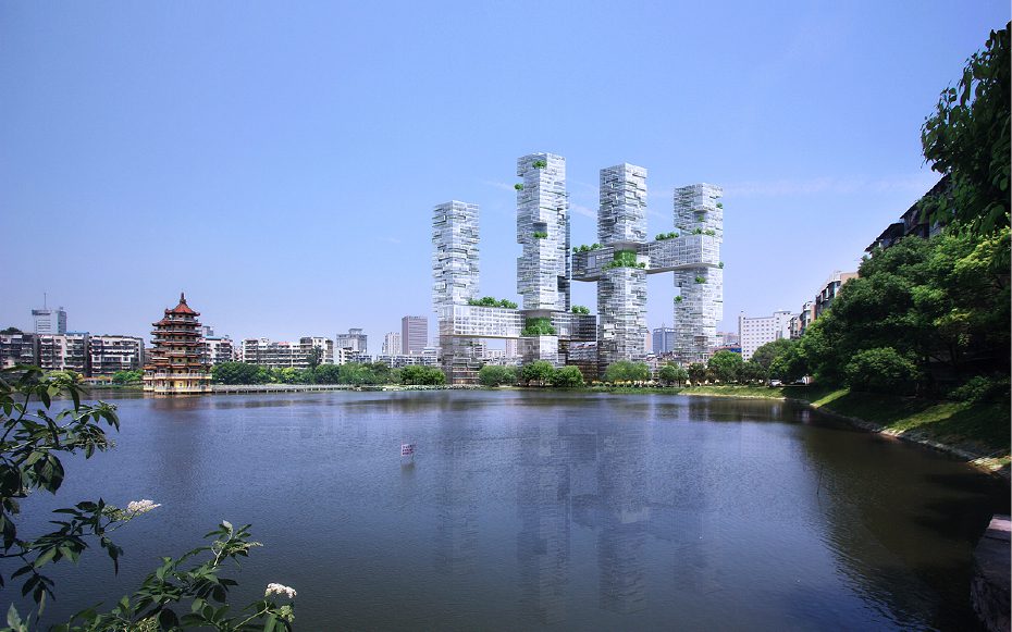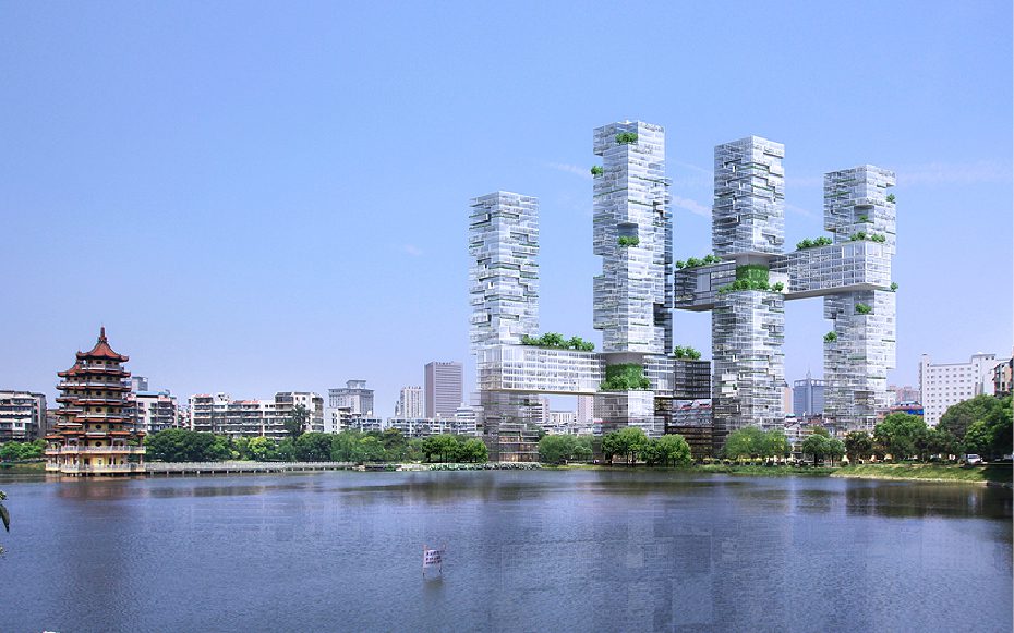 Wuhan Mikado project is a new proposal for a mixed-use residential high-rise in Wuhan, China. Julien De Smedt Architects designed it so that the views in all parts of the structure are maximized to take advantage of the city’s various waterfronts. At an initial glance, one can observe the building as a design consisting of multiple towers connected by horizontal bars that serve as public program, resident amenities, and circulation to connect the towers.