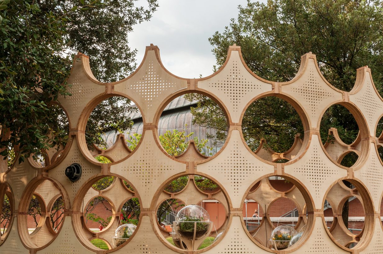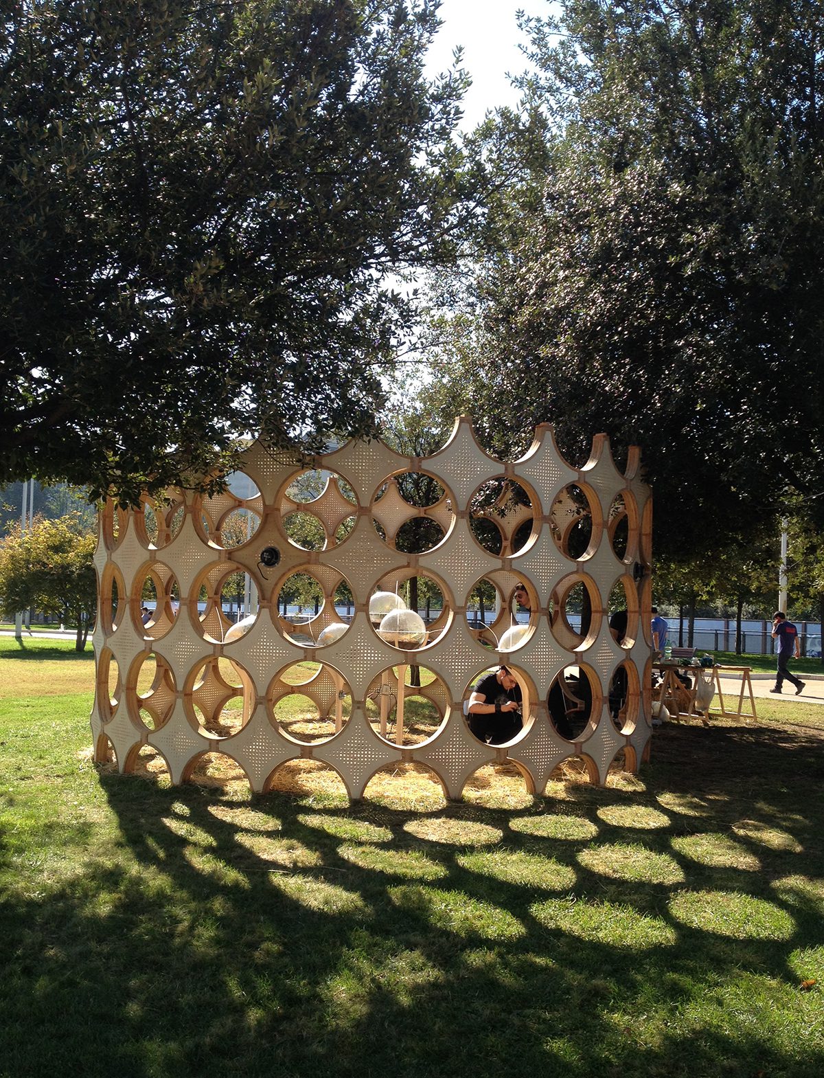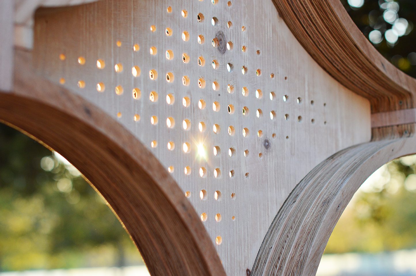It was a cross-disciplinary effort for “organic design with tactile experience.” By combining the architectural geometry with the aural enhancements, Wunderbugs displays the “inseparable (and abstract) relationship with the world’s harmony.” Creating this through a series of CNC and laser cut plywood panels, the pavilion is designed for flexibility and modularity. Putting together ancient Roman inspired façade with Arduino sensors of today, this design bridges time, but also meteorological conditions like “location, motion, humidity, temperature, and intensity of sunlight.”