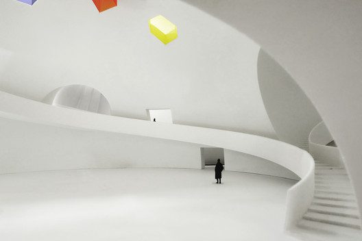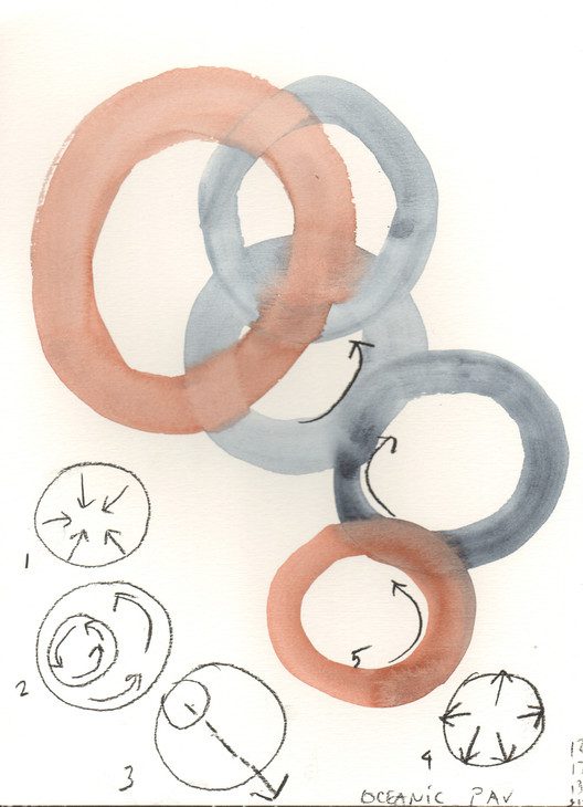 Additionally, the architect’s traditional approach continues with his watercolor sketches, which were selected of other 30 other submitted schemes. His proposal consists in integrating the ocean horizon into the architectural composition, while the intersected sphere will be constricted in a rectangular planetary wrapped by water.