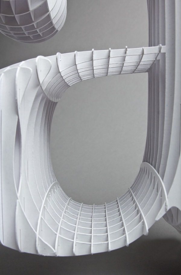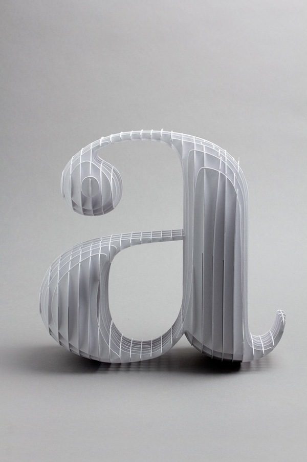 Using thin cardboard Lo Siento – the Barcelona based studio- tried to imagine how would a Bodoni “a” letter look like undressed ! they developed the design several times and finally completed the internal structure of the Typeframe.