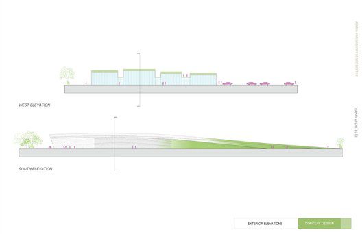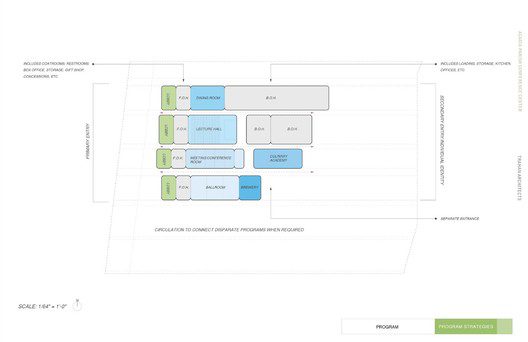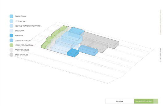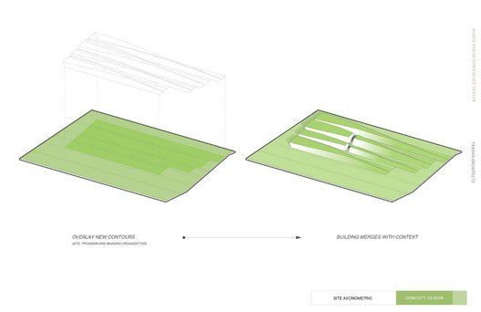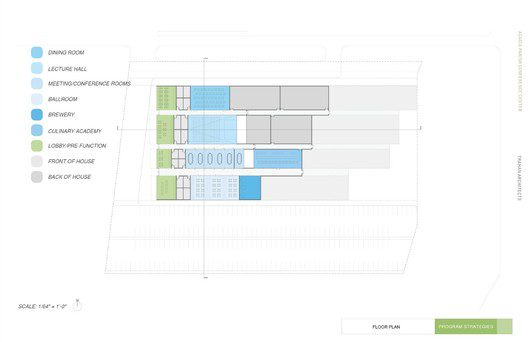 The entire structure can be seen as four bars housing different programs including a dining room, lecture hall, conference center, and a ballroom. In order to allow for a more intuitive user interface, subtle variations were made to each space, as dictated by the program, which allowed the center to remain uniform while hinting at the different usage from room to room. The effort put forth by Trahan Architects signifies the plausible and undeniable changes in modern development as their vision shows a strong appreciation of the culture around that area, drawing upon it to design not only a green building, but a thoughtful one as well that seeks to preserve the landscape and agriculture itself.