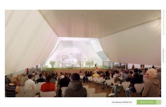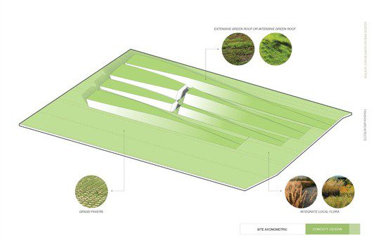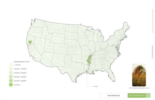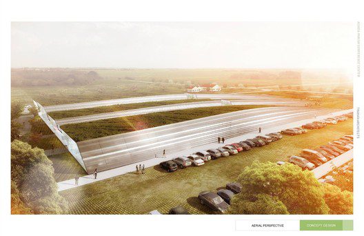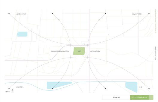 The Acadia Parish Conference Center, created by Trahan Architects represents refreshed ideals, a new world order in respects to traversing the space between urban development and agriculture. Located north-east of Crowley, Louisiana the “Rice Capital of America” it was important for this project to create balance within the site, where modern architecture can be explored and experienced but the importance of the local agriculture was not lost and neglected as it represents such a large part of the community. Emboldened by design’s that complement the harmonic state of nature rather than take from it, the building naturally penetrates the landscape with an intricate balance of sterile whites, glass and purely clean looking angles, hidden in grass.”