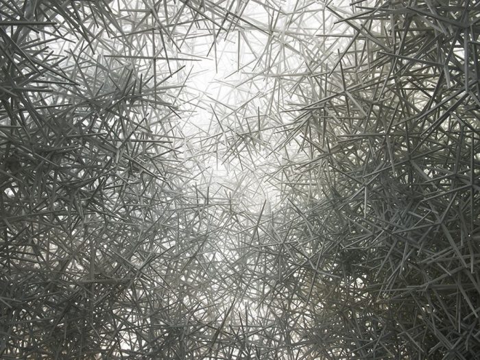 In their text description of the project, the designers of the pavilion say: “In inanimate nature, large masses of granular substances, such as sand or gravel, are in constant processes of a formation through perpetual cycles of erosion and accretion. What if architecture was to emulate this behavior and allow for its own continuous reconfiguration?“