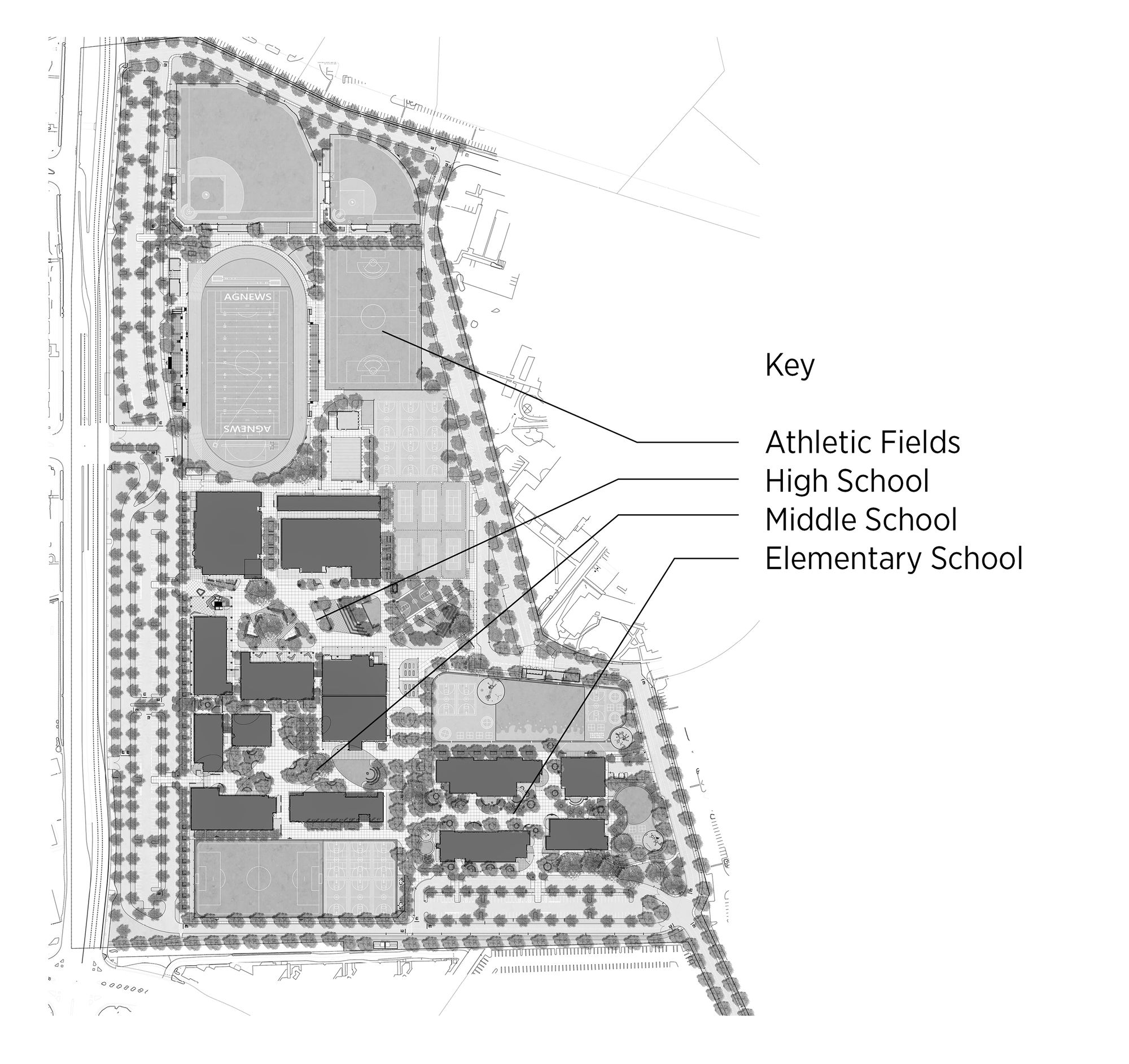 The Agnews K12 Campus was more than just thrown together randomly. It’s all about these guiding principles called S.M.A.R.T., which stands for sustainability, mindfulness, adaptability, relevancy, and transformation. They got these ideas from talking to teachers, industry folks, and the community. The design is about making the schools feel connected but still different. The elementary school buildings are one story, the middle school steps up to two stories, and the high school rocks three stories. And get this – each campus has cool STEM and collaboration spaces that match the grade level. There are also spots for teamwork and outdoor learning that match how students learn at different ages. It’s like they thought this through!