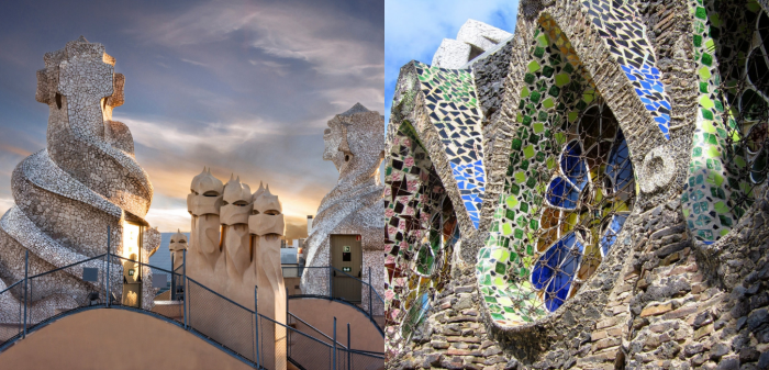 Antoni Gaudi’s distinctive trademark of modernist architecture—inspired and influenced by the Catalan Gothic style, Art Nouveau ornaments, Neo-Gothic architecture, and Oriental interpretations of Asian design popular in Europe—is well known in inventive spirals and far beyond, with notable examples including the Sagrada Familia, Casa Batllo, and Casa Mila.