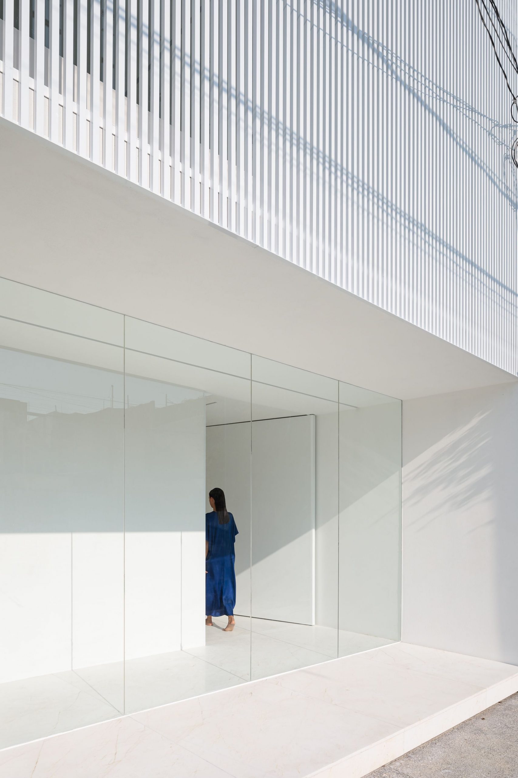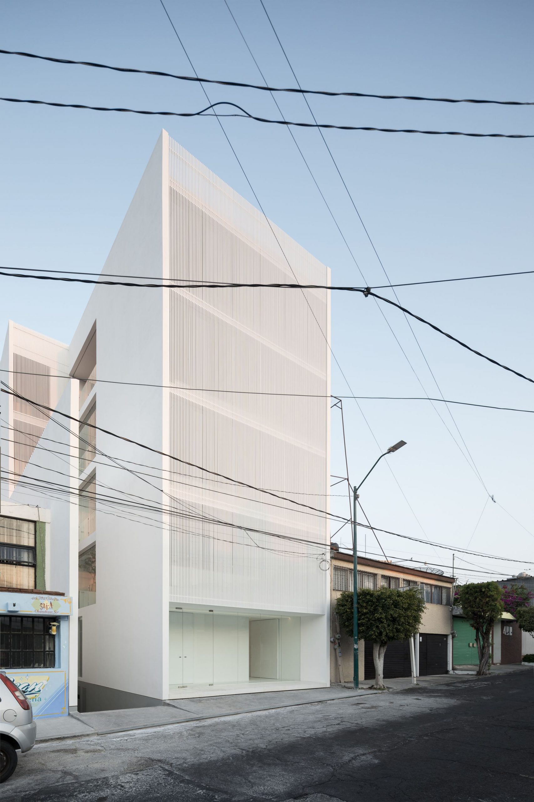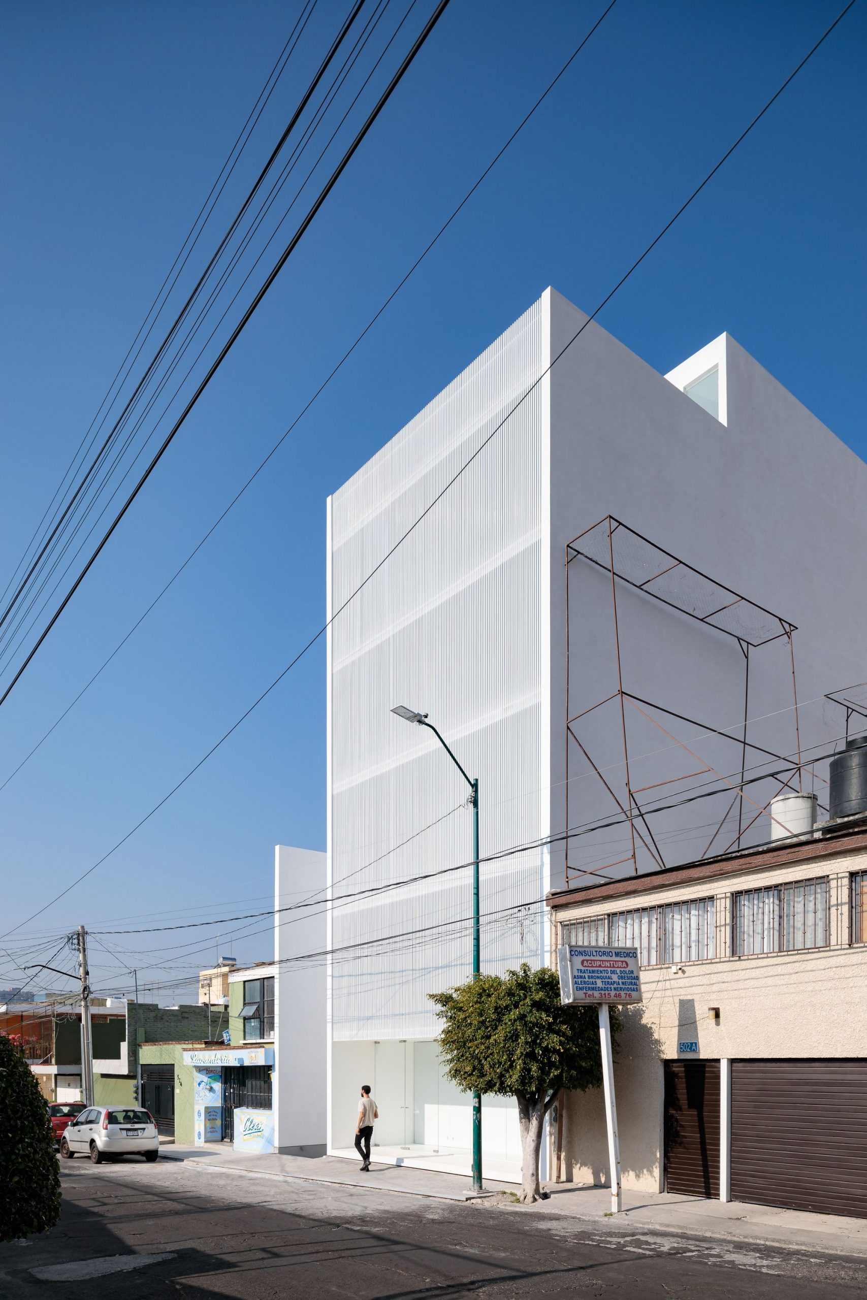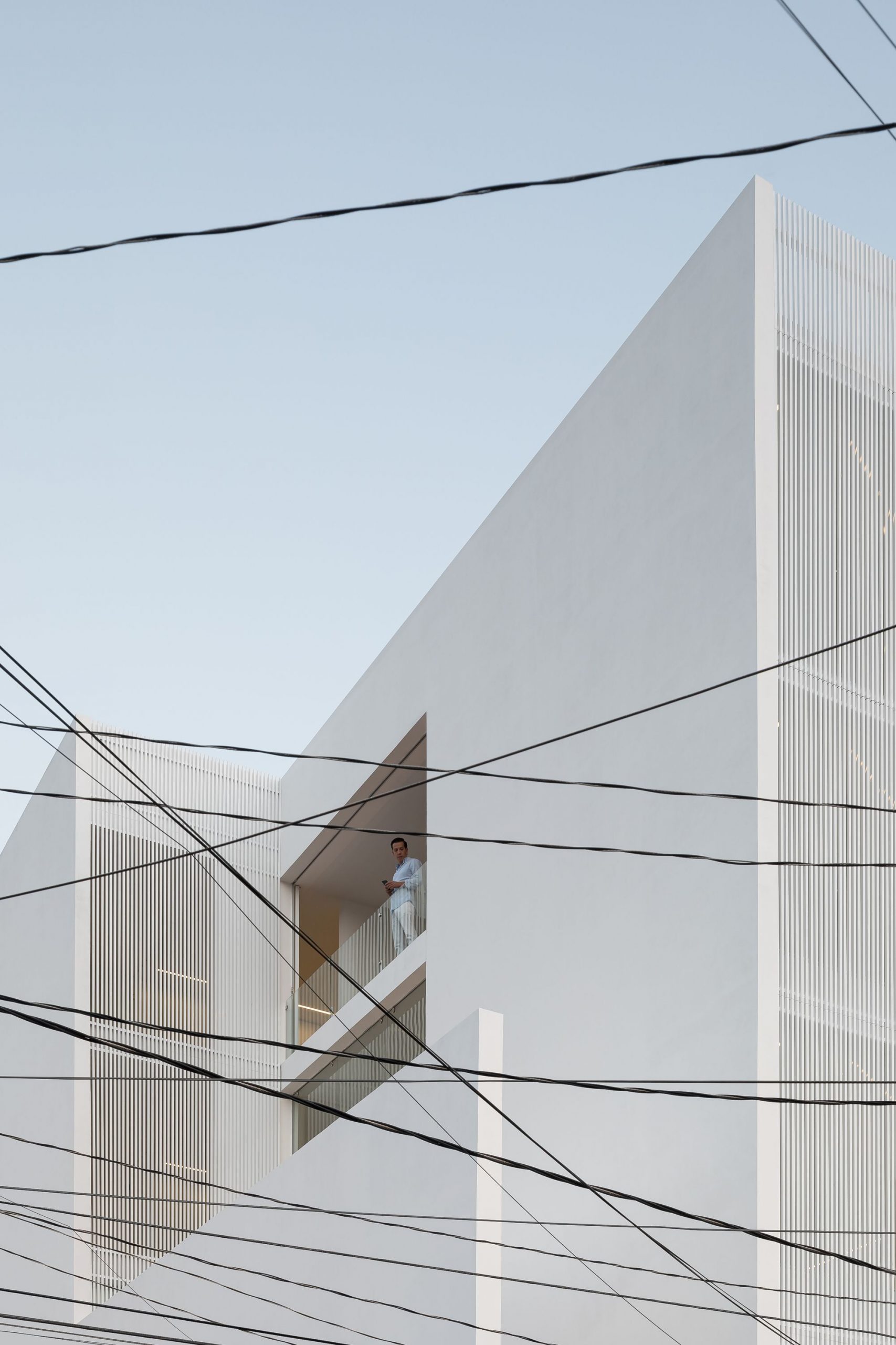 AI tower, white and modern in nature, aims to be a space that evokes silence, a pause among the noisy and sometimes violent symphony of forms within any city.