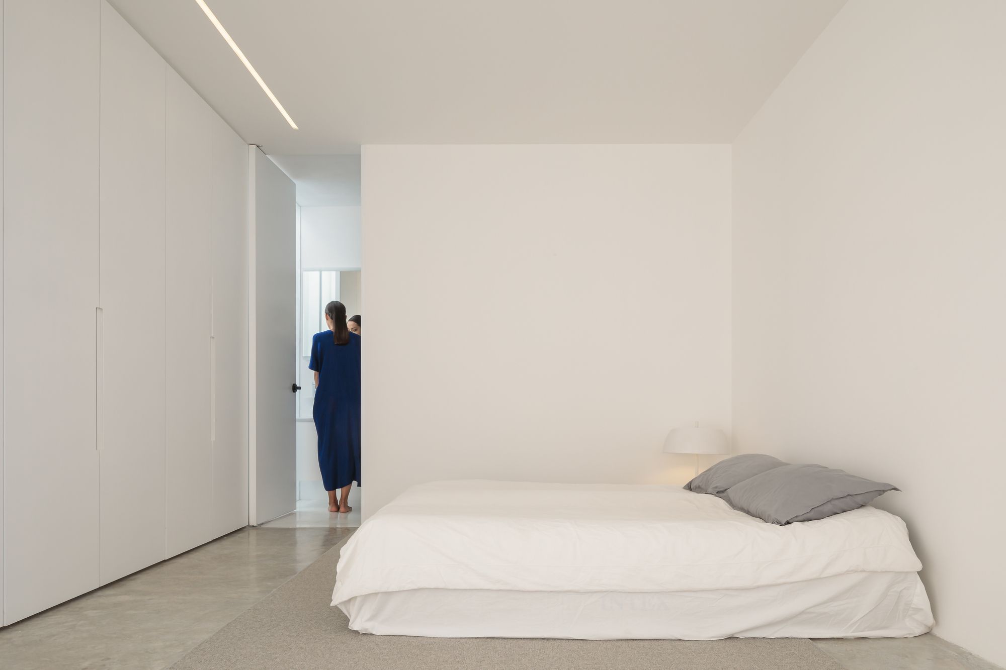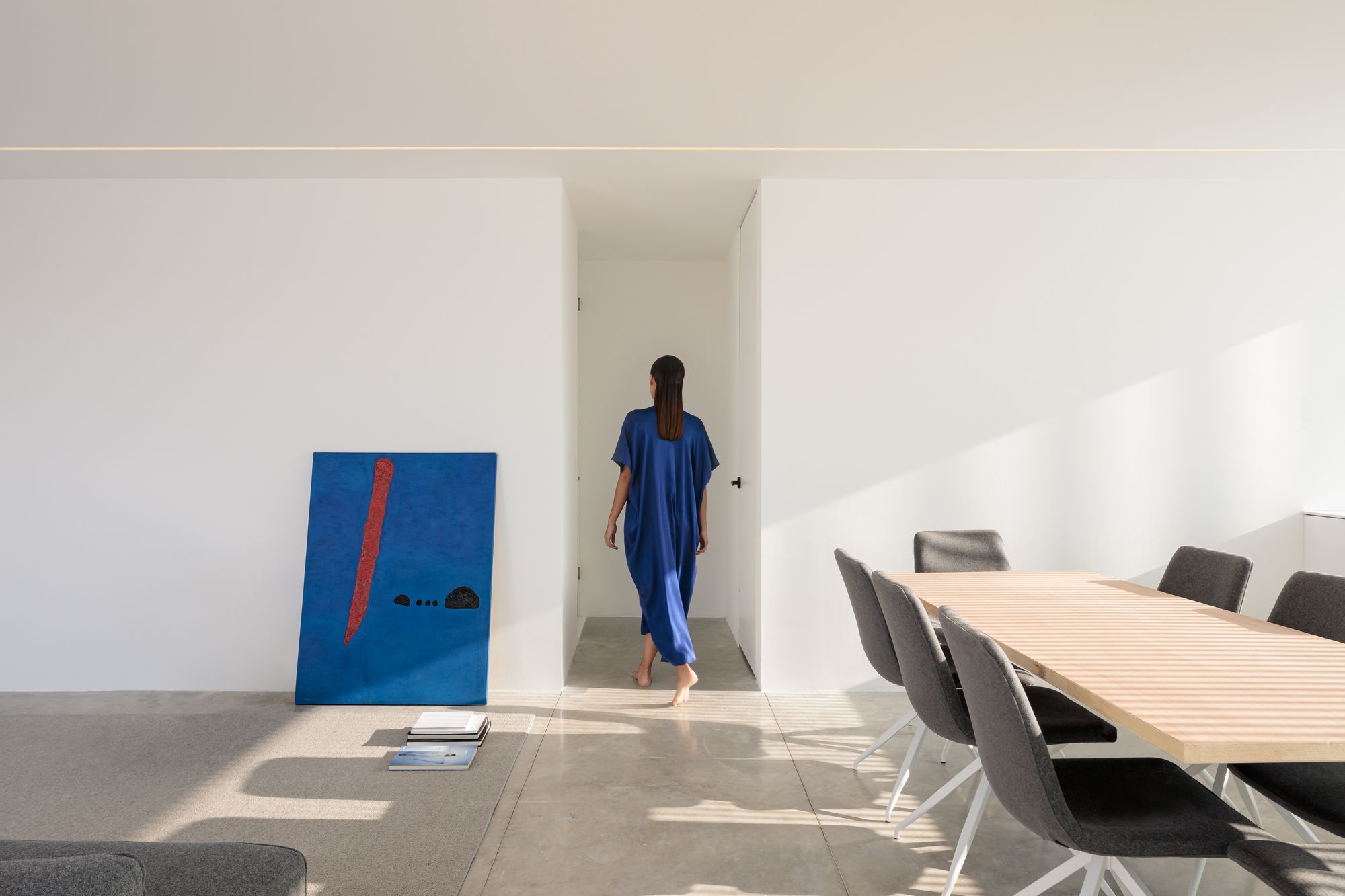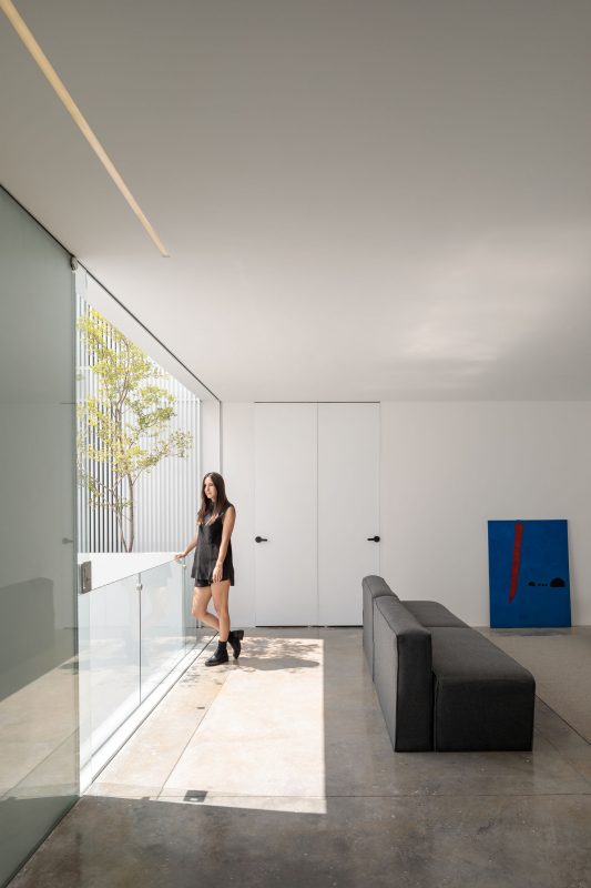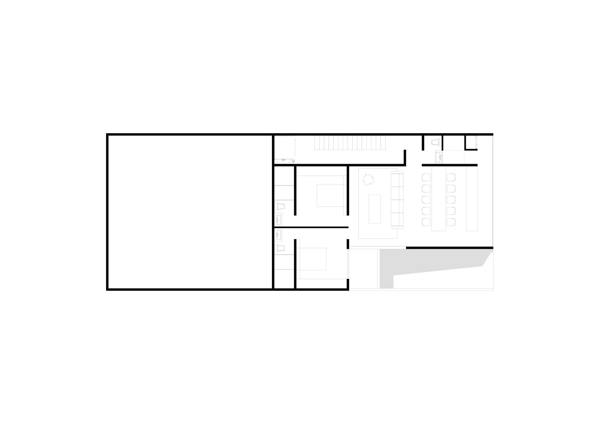 As the space for housing was limited, we placed all the horizontal and vertical circulations and services on the right, thus freeing up the center of the floor and making the most of the available space. The public areas are kept completely open, while the private ones are easily separated by a wall.
