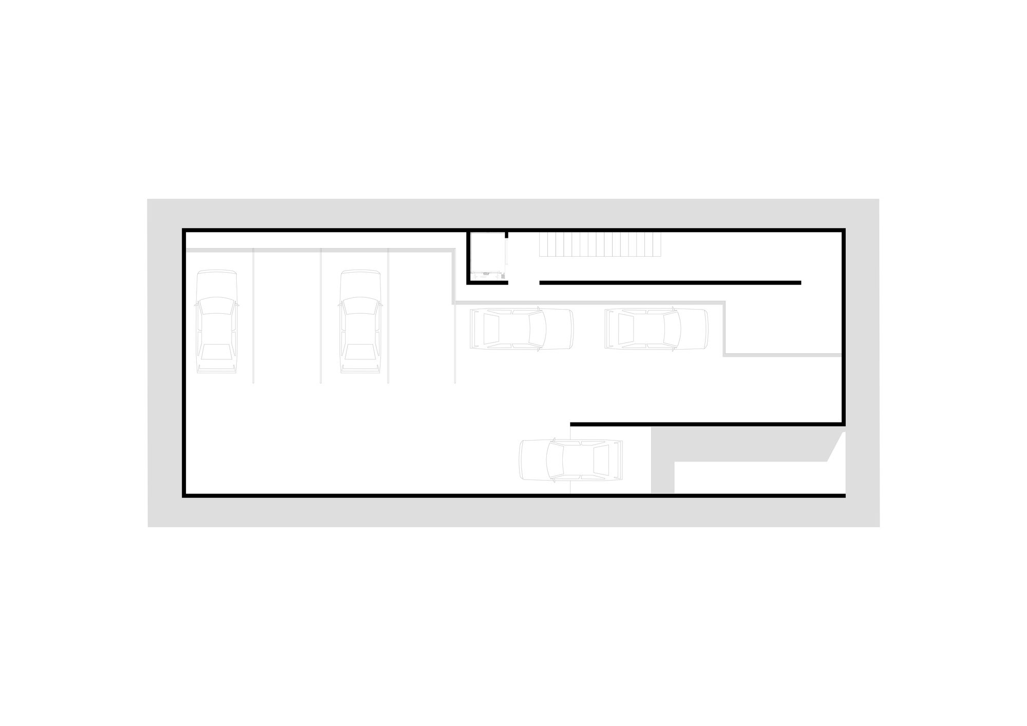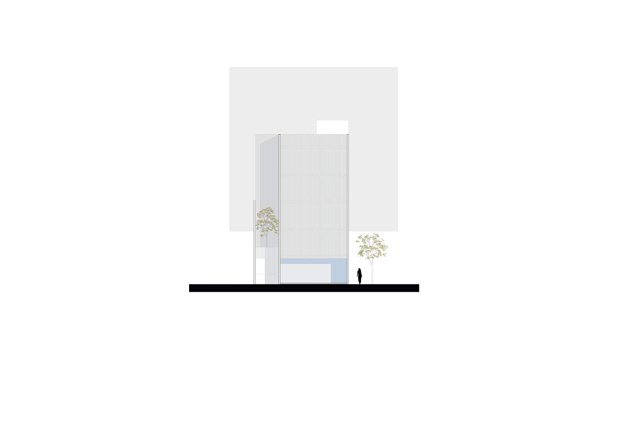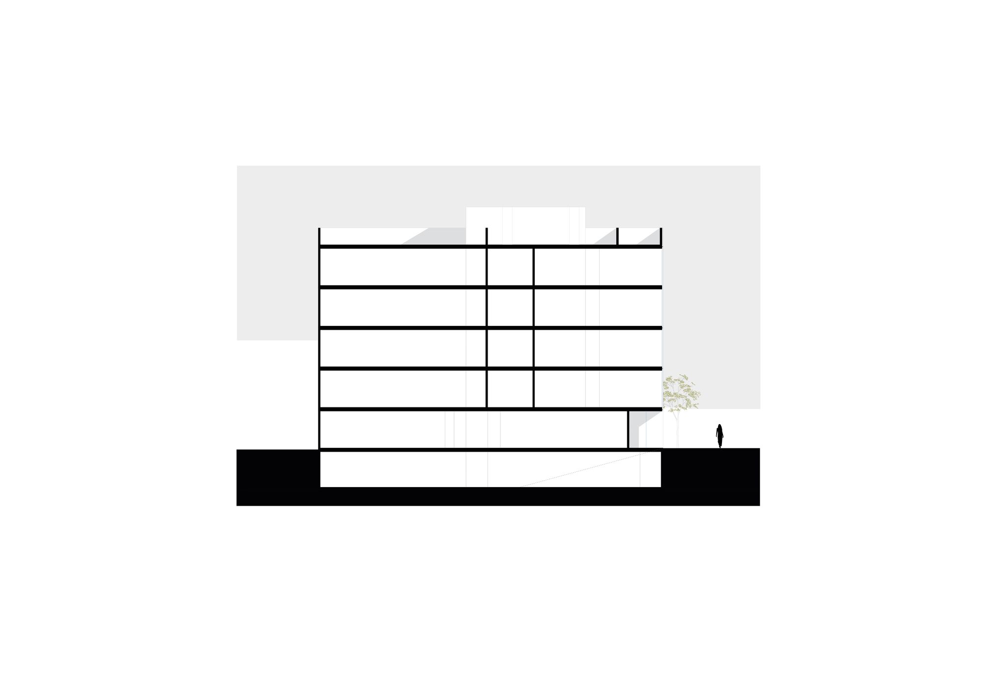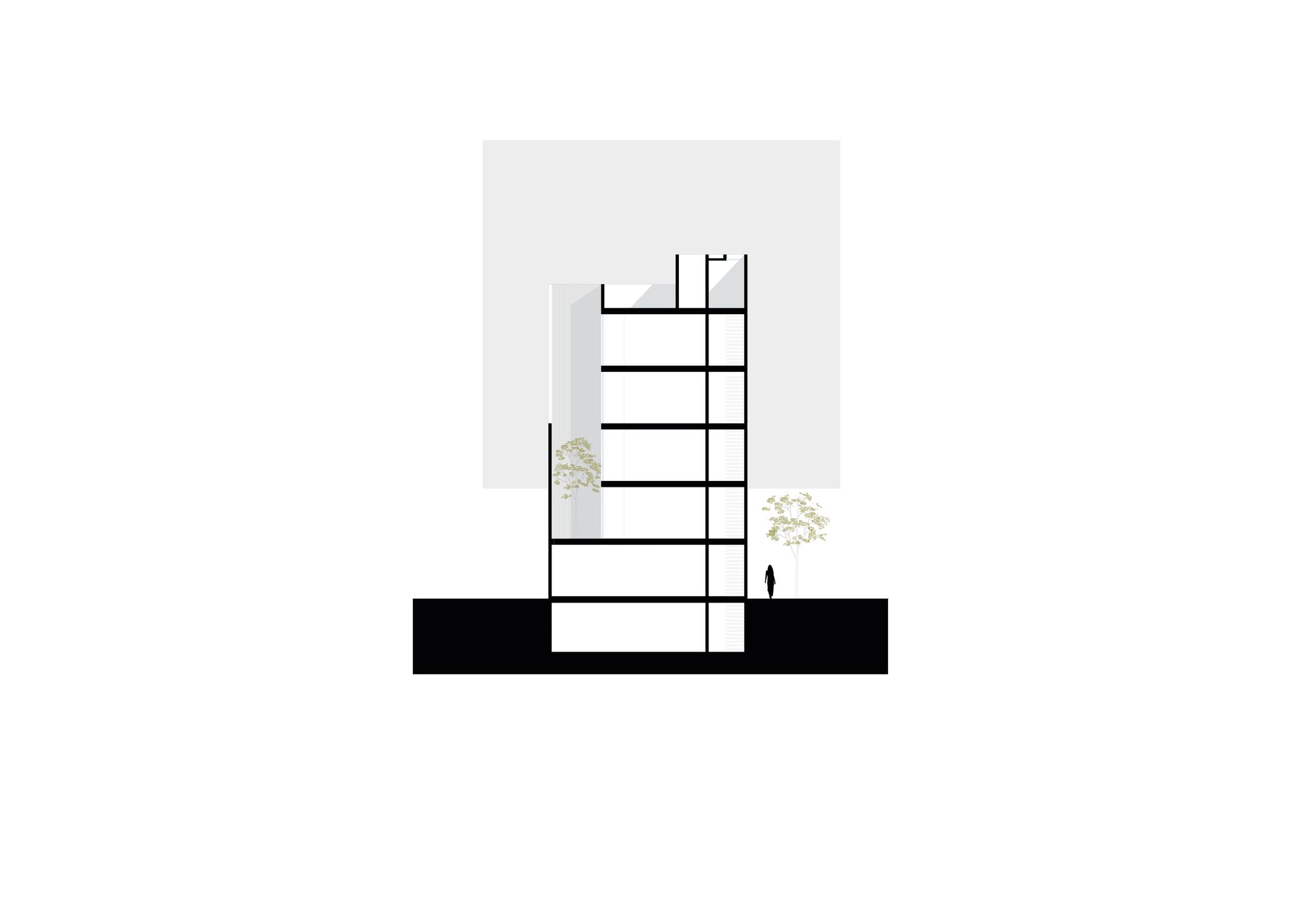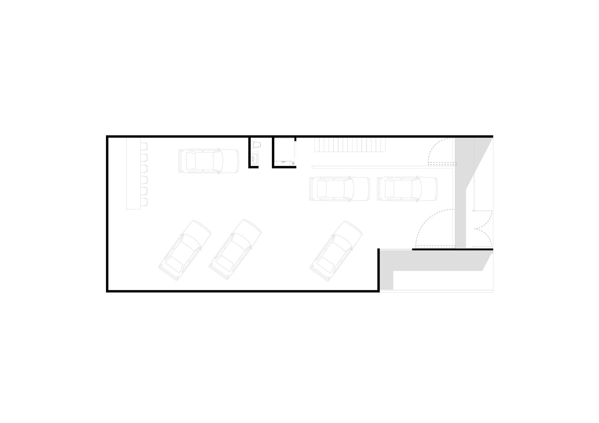 The program is organized as follows: the first story works as an underground parking lot; the second story is the owner’s classic car garage; starting from the third story, the program is divided in two sections: a warehouse standing at the back of the property and one and two-bedroom apartments at the front.