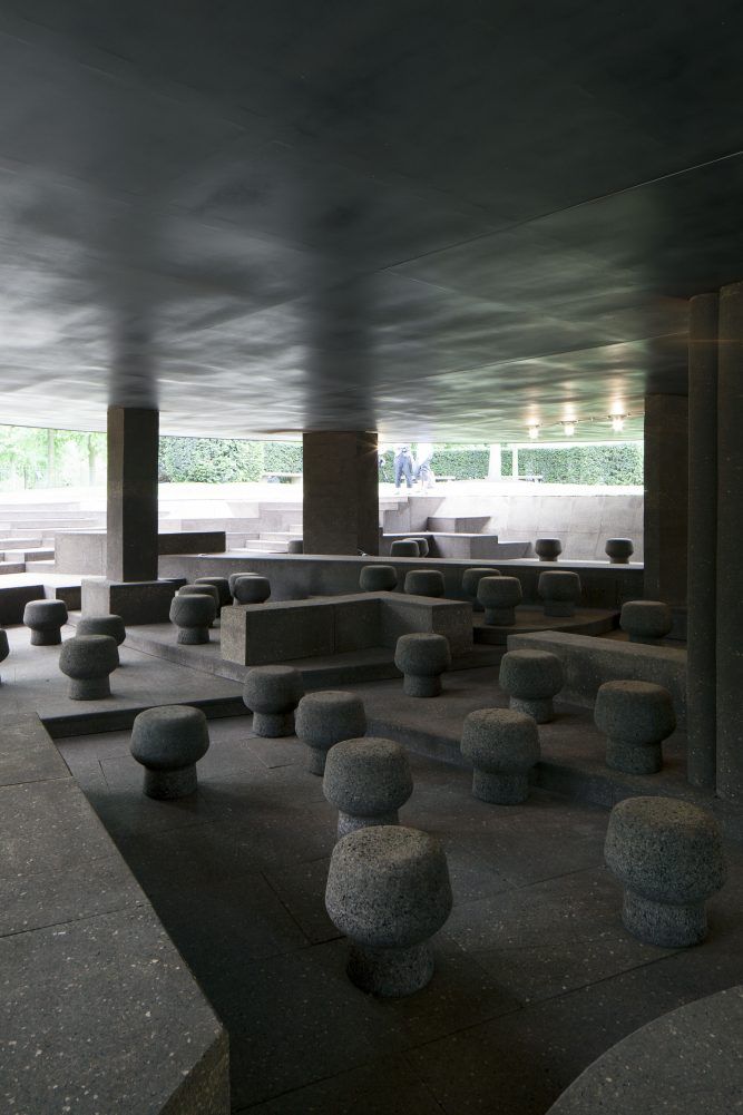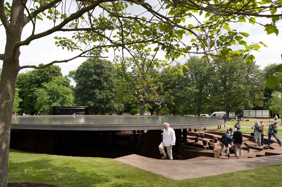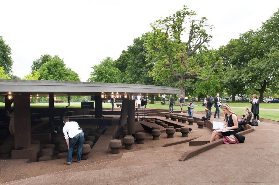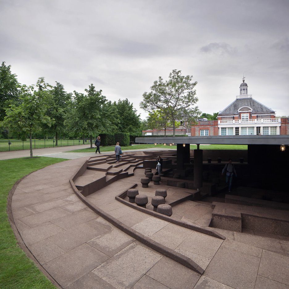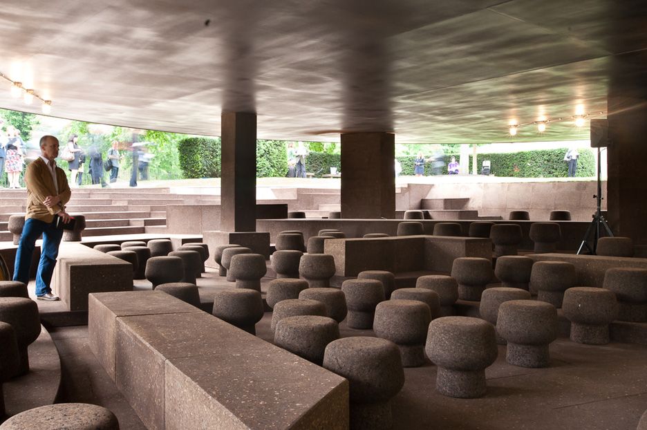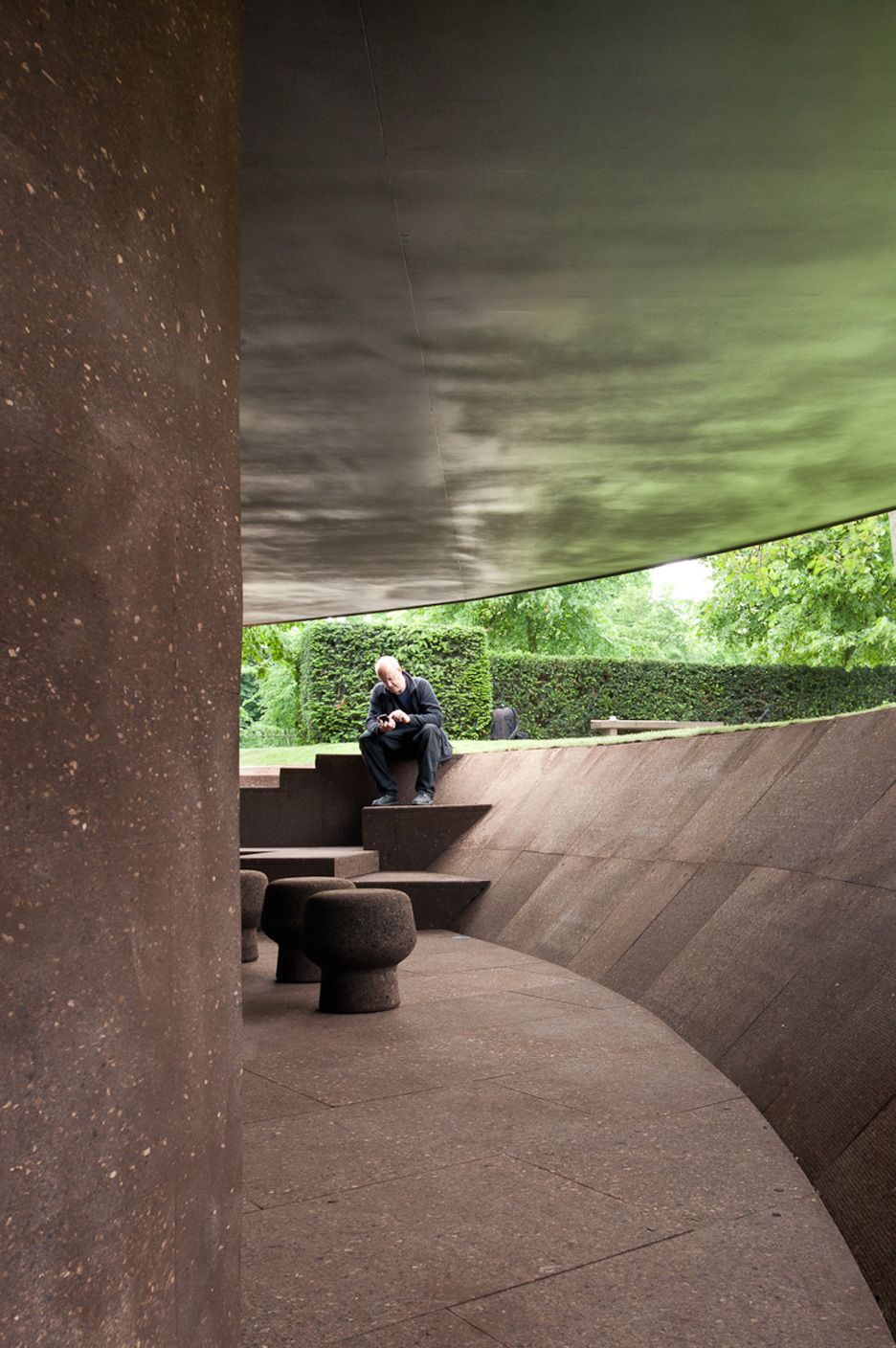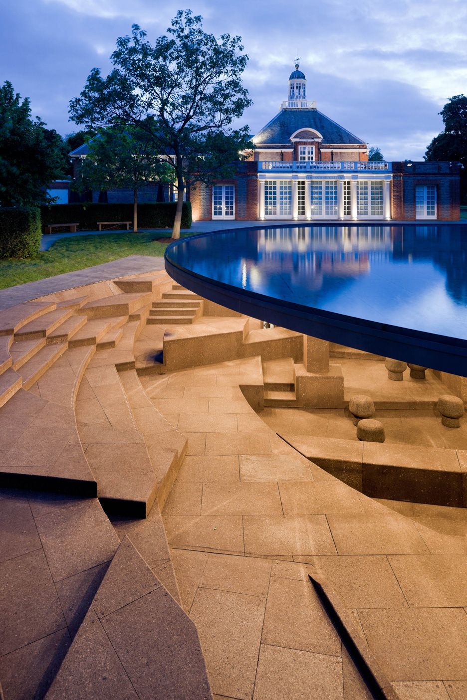Dusk view – Serpentine Gallery Pavilion 2012, Kensington Gardens, London, UK. Designed by Herzog & de Meuron & Ai Weiwei. Courtesy of Herzog & de Meuron and Ai Weiwei