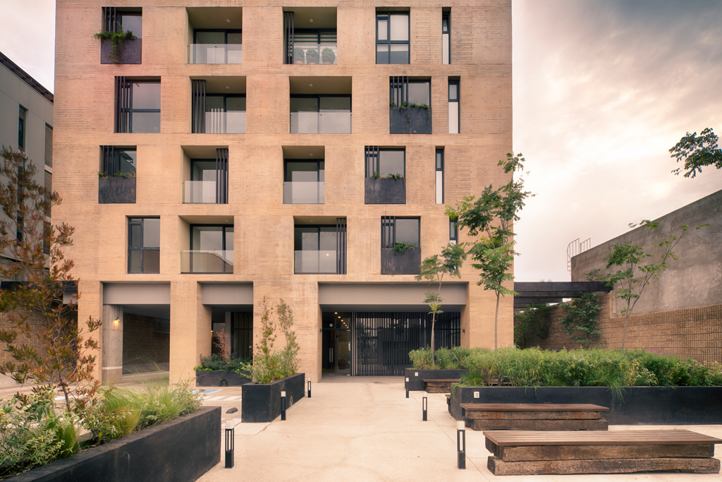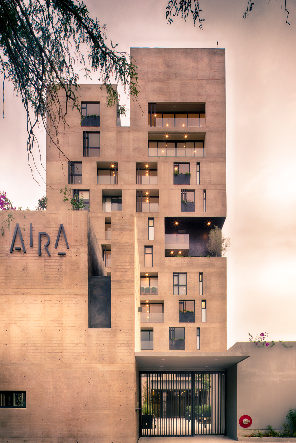 A constant presence of the natural world was sought, and all floors are enlivened by this relationship; green hues are painted by nature with the planters that are distributed over the facades. The walls of pigmented concrete allude to the color of the soil in the area; they are structure and skin at the same time. The color of the different nuances of the material generates subtlety in the volumetry and allows the building to age in a more dignified way over time. Aira has been recognized with the 2nd place in the category “Residential” at the Cemex 2018 Awards.