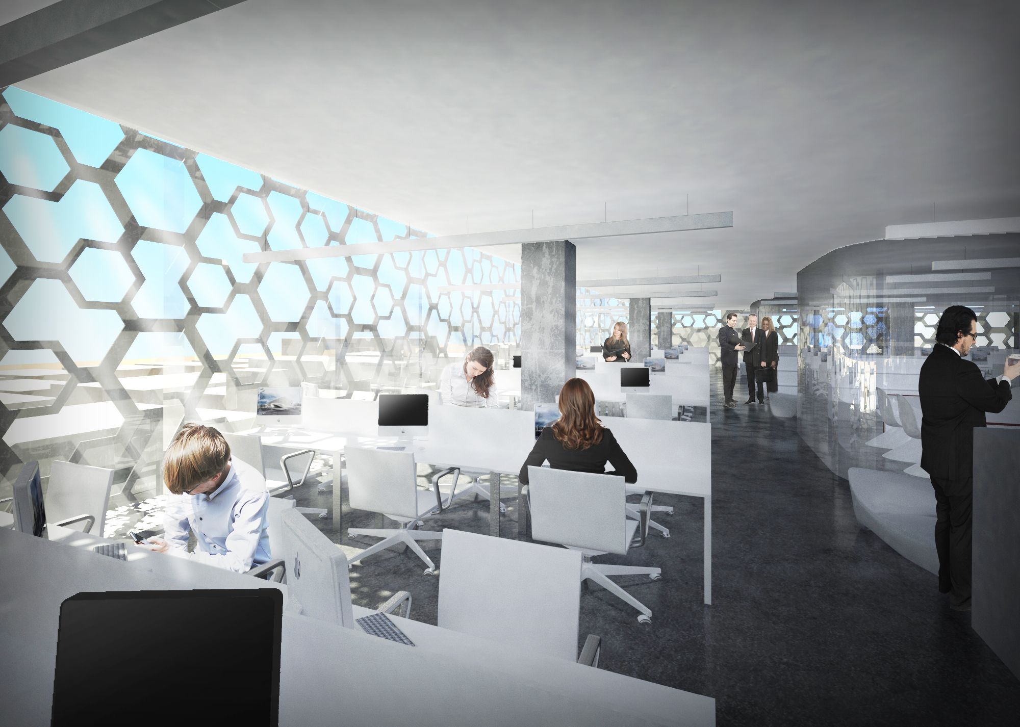 The programmatic functions have all merged through the use of a consistent, curvilinear skyline that forms a framework for the basic master plan to work in cohesion. The idea behind the master plan was to provide a self sustaining city that exists through the interaction of vital elements, not with idea that one aspect redefines and rules above all.