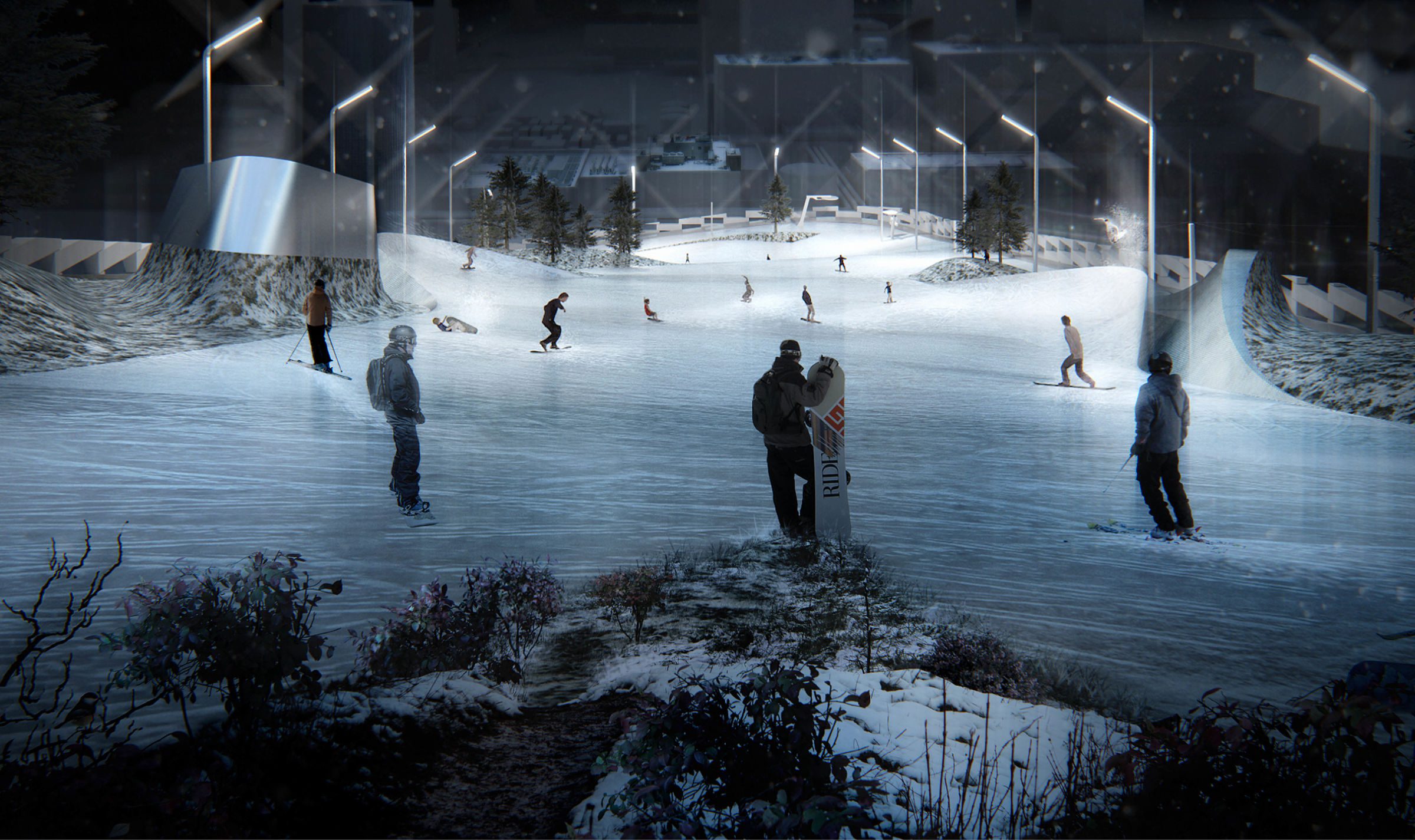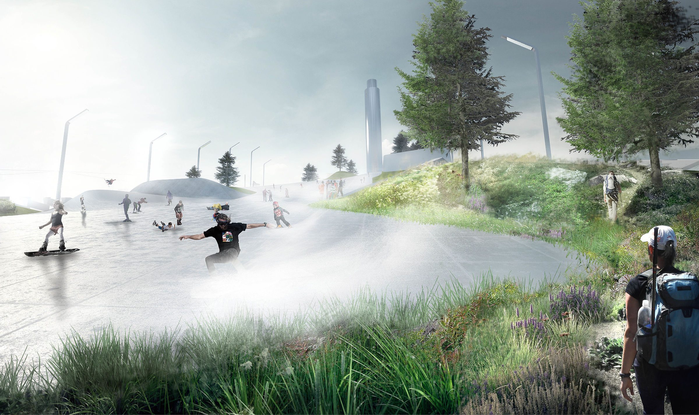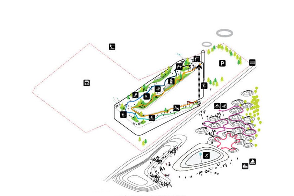Replacing the aging Amagerforbraending plant, the new wedge-shaped building will occupy a plot within an industrial zone, near the city centre of Copenhagen. Here it will not fulfill the preconceived notion of power plants being dirty things to be shunned and tucked away. Instead, the plant seeks to be a destination in and of itself. A 31,000 m² ski slope will exist atop the building’s switchback roof, offering a fun, multi-skill-level visitor attraction to the city.