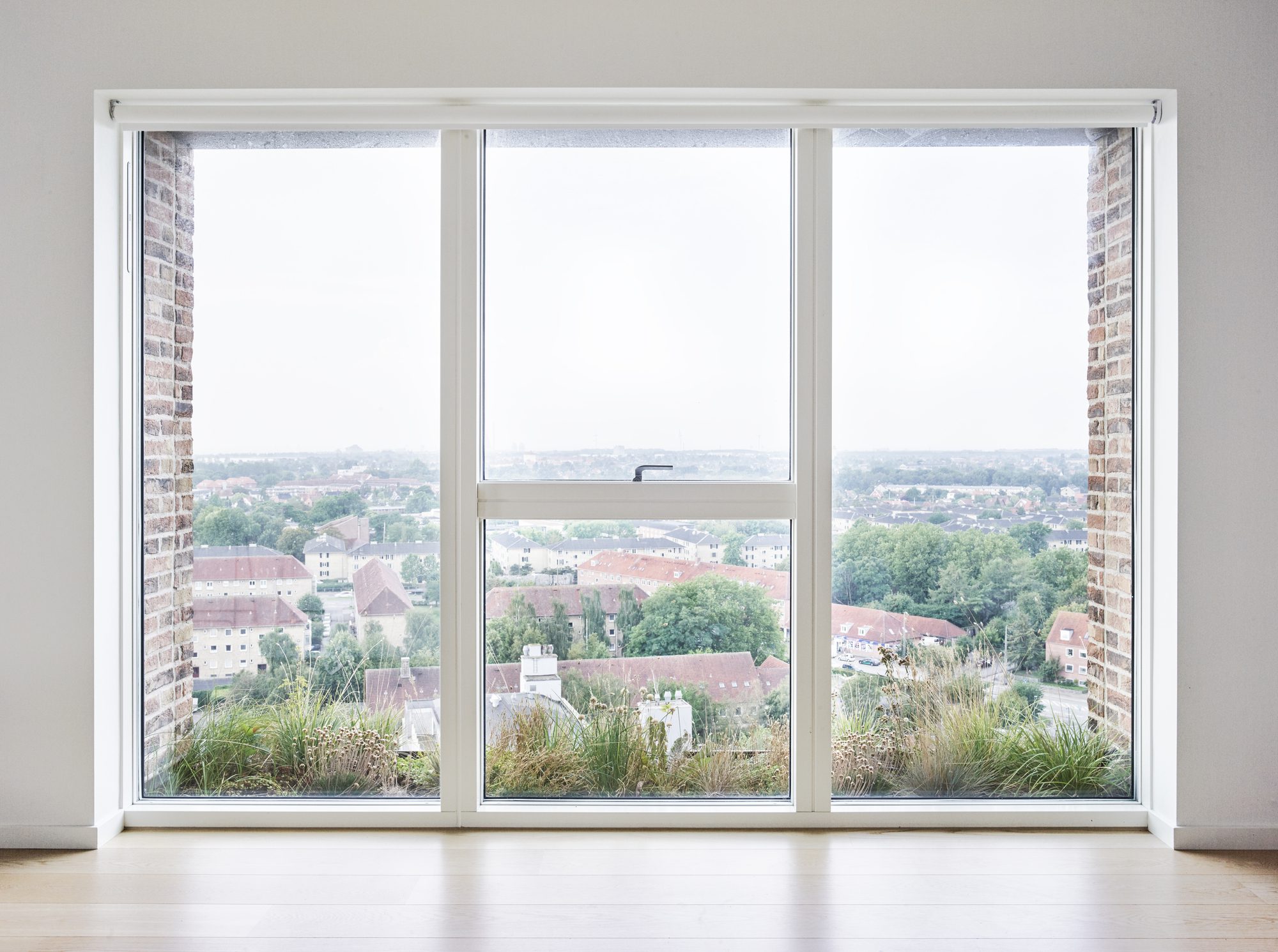 The result is an architectural statement that incorporates private gardens into the apartments of the tower, while, from a distance, signaling the history of the area and the industrial scale. To accommodate the best daylight conditions for the residents in the tower, large planes of glass shifts from one floor to the next in a checkered pattern, minimizing the shading effect of plants and balconies. The balconies and gardens are nestled into the structure to provide shelter from the strong winds that blow around the tower. The recessed areas give the tower a clear, legible and expressive relief from a distance that reduces the scale of the building as you approach it.