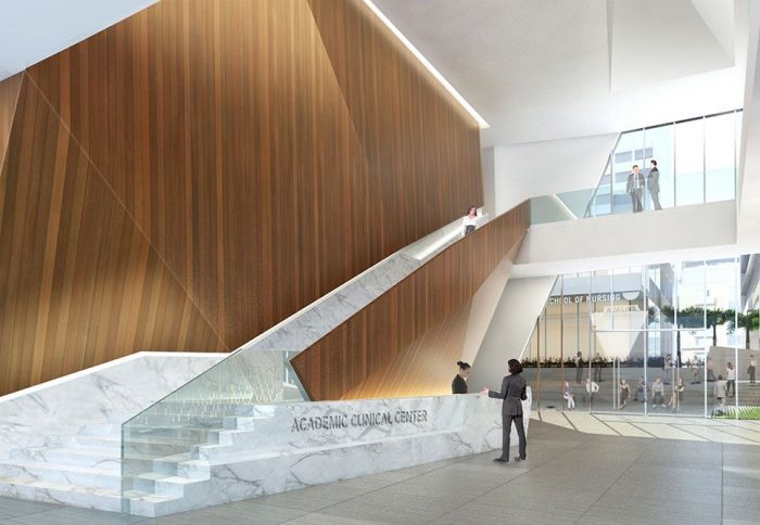 The building design establishes independent but cohesive visual identities for each of the NMC’s key departments. This concept resulted in a massing and façade strategy organized around and connected through a public circulation and atrium space. The result is a fluid internal interaction of seemingly independent programs.