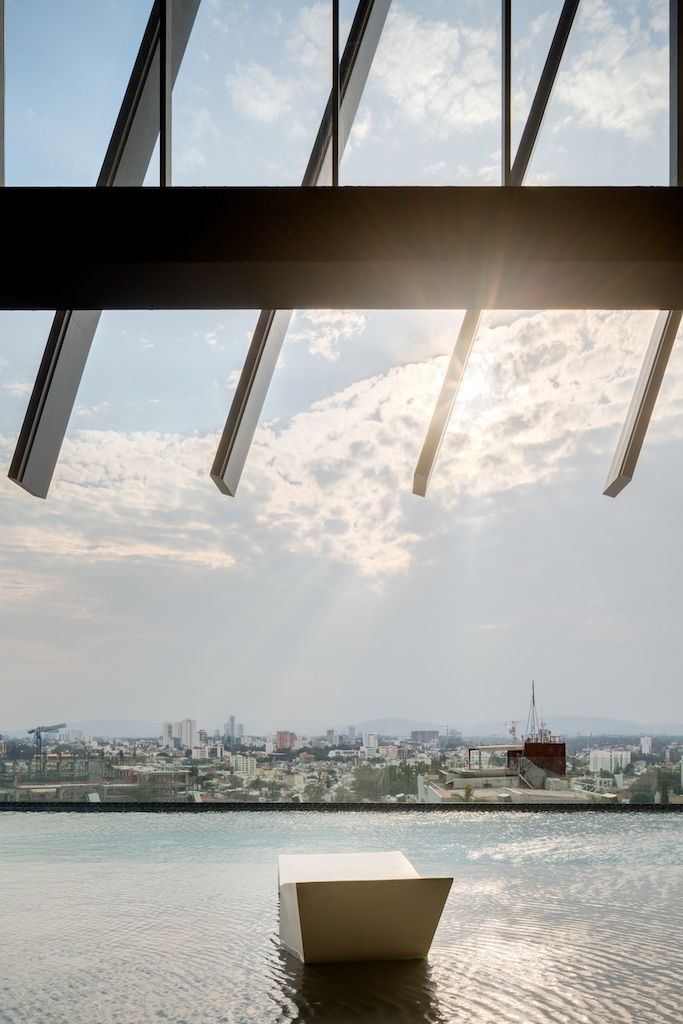 This mixed-use project for offices and a hotel is located in the heart of the city of Guadalajara. Its formal, emphatic, and unified volumetrics express its iconic nature.