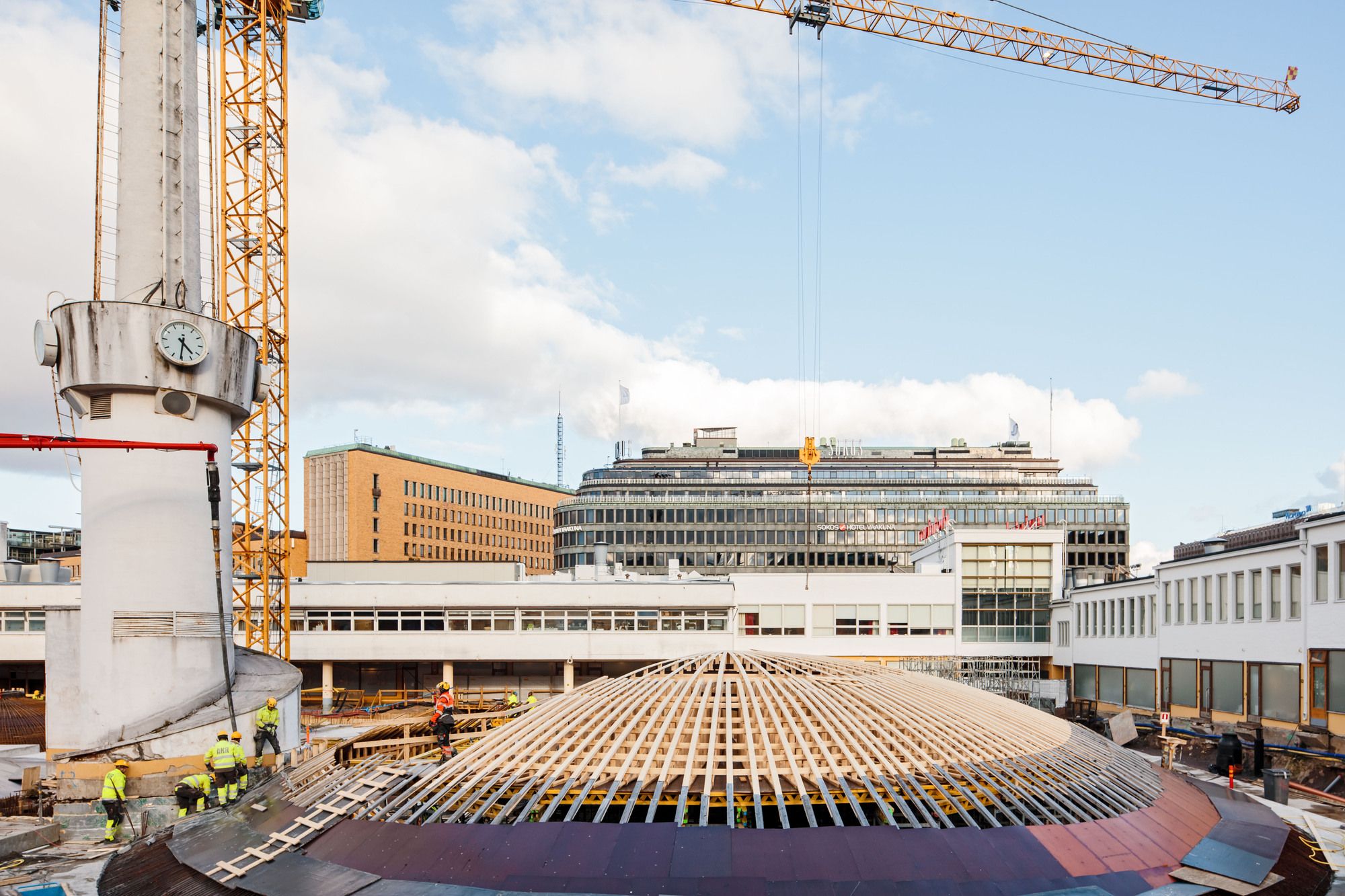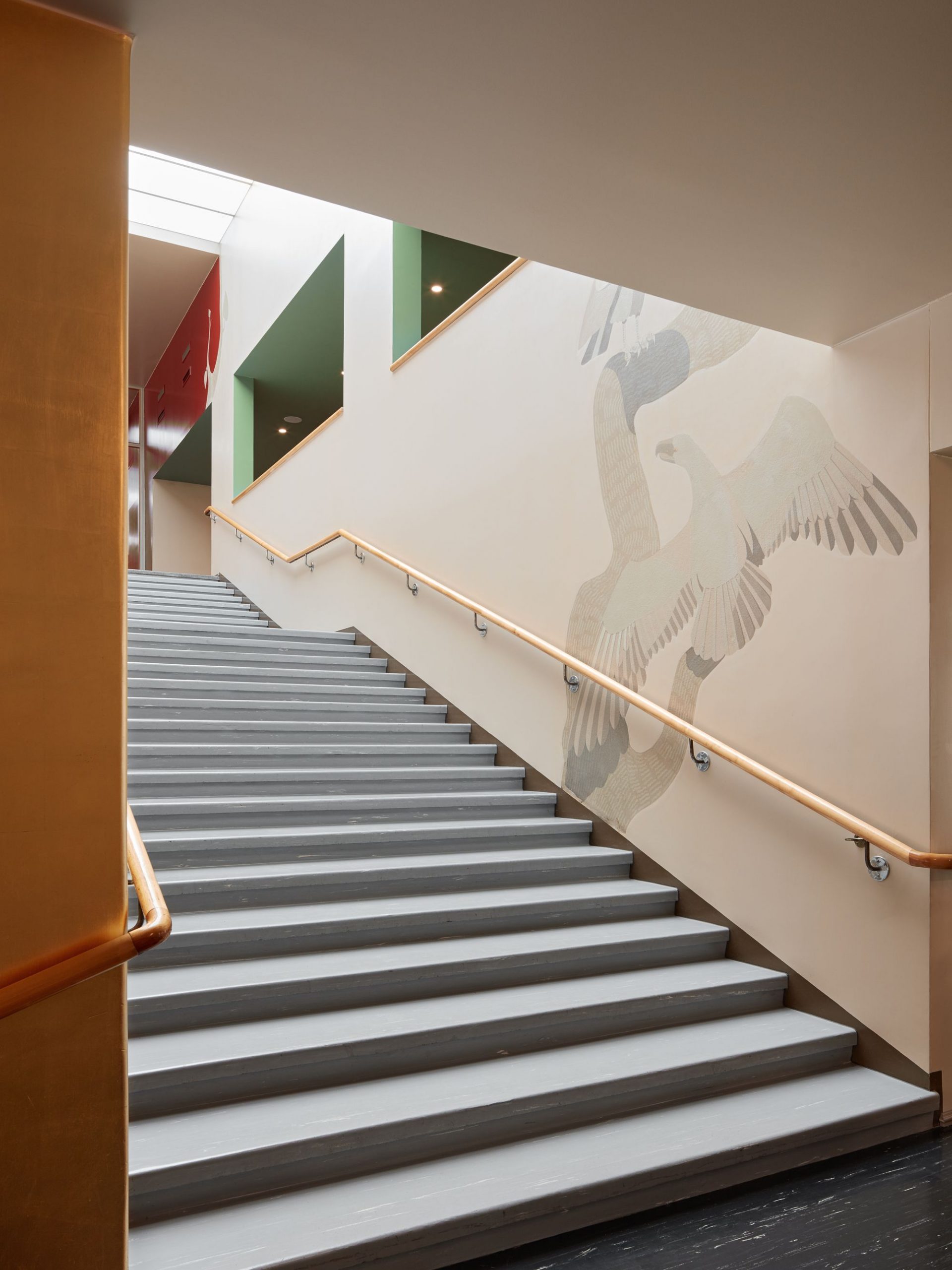The Lasipalatsi has been comprehensively refurbished as part of the project, with special care given to preserve original features that include the first external neon lighting in Finland. Detailed research from historical sources as well as analysis of material on-site, conducted in partnership with the Helsinki City Museum, allowed JKMM to recreate a palette of materials and colors that are true to the original design.
