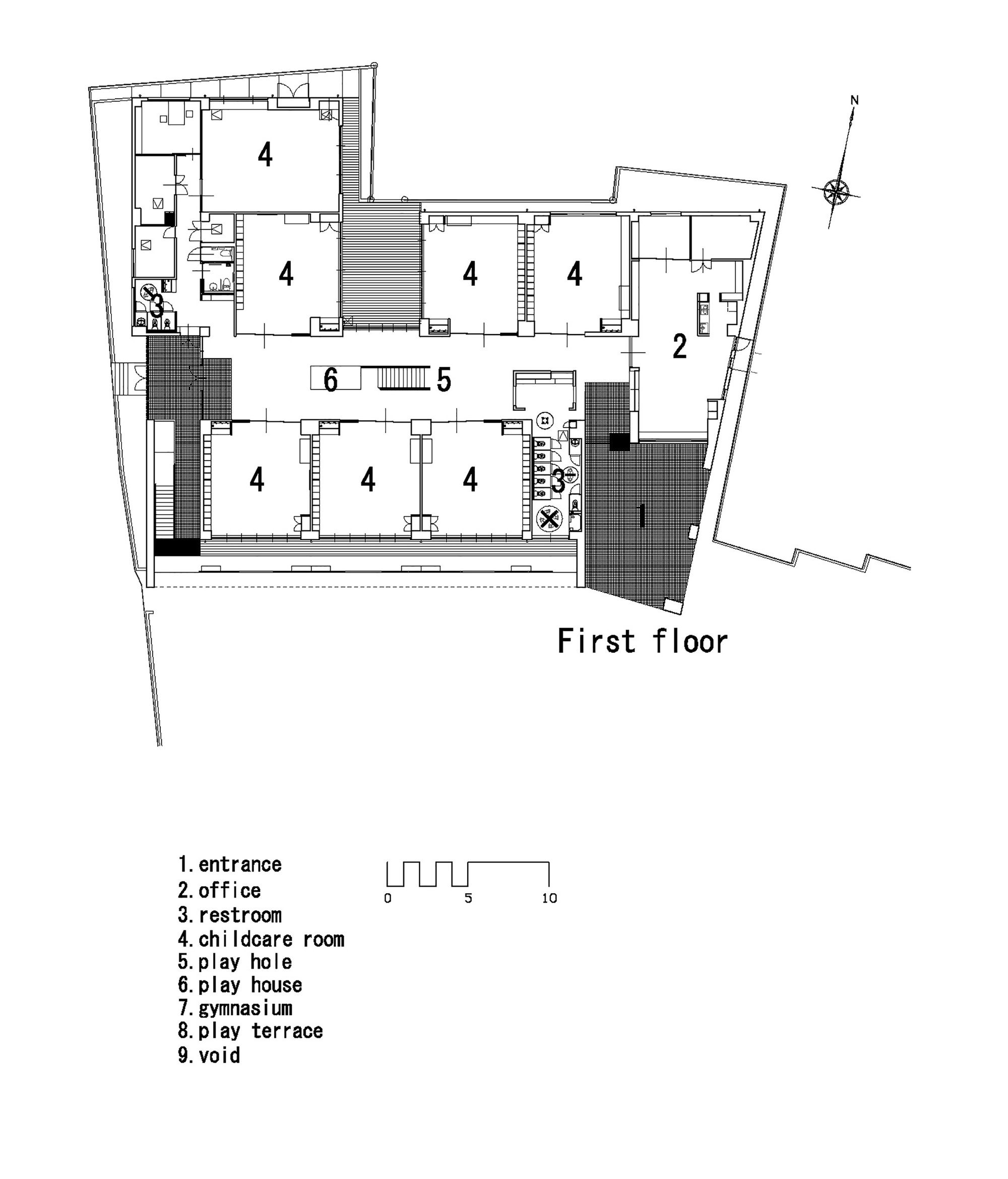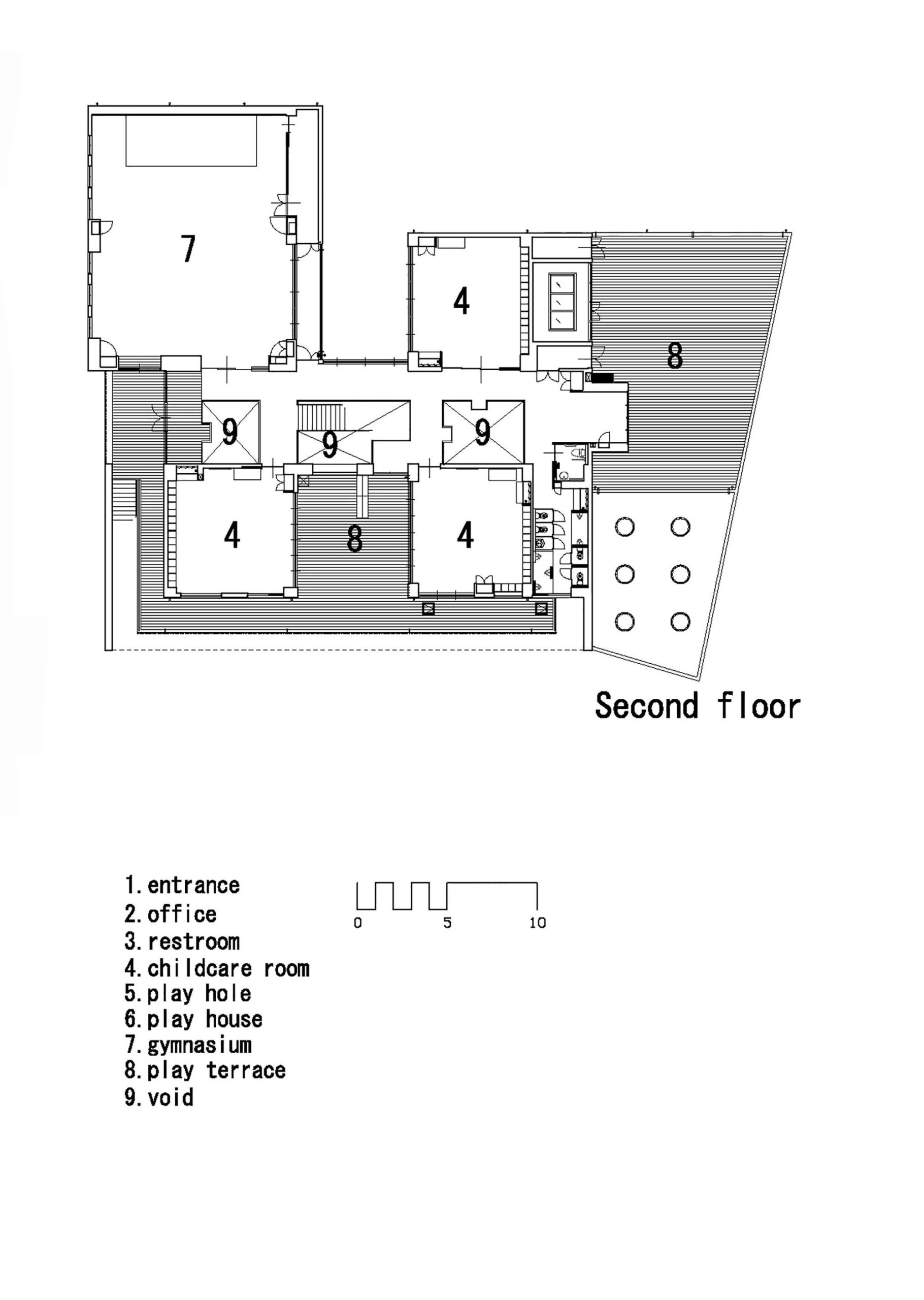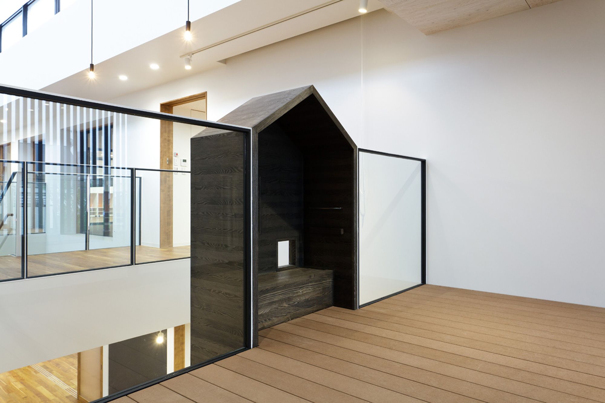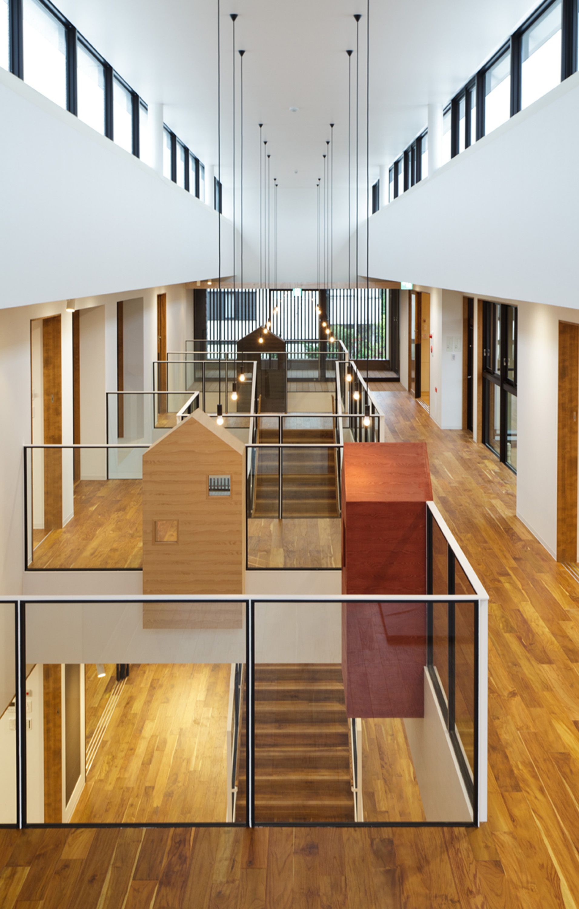 “woods”. In the woods, there are factors that prompt a variety of discoveries, chances and 5 senses. The communication space in the center imagines this kind of “woods”.