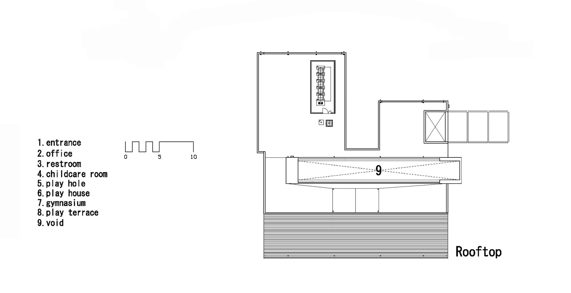 To improve the point that they cannot see each other since the 1-floor building is transformed into a 2floor building, we set a number of open ceiling spaces.