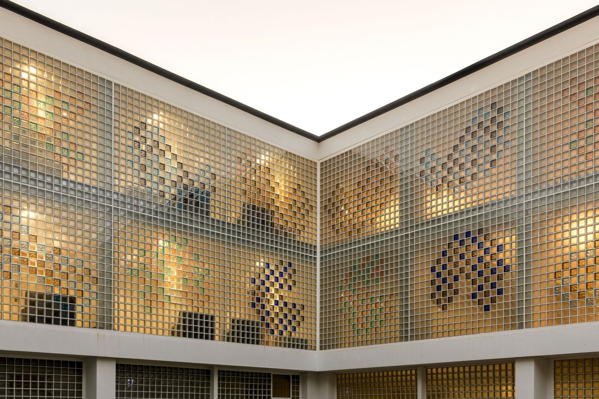 By setting the building back from the boulevard, a buffer zone is formed, serving as a recreational space for both educational purposes and extracurricular community activities. The educational and administrative functions are organized into distinct building volumes that frame an elevated inner courtyard. Circulation spaces wrap around this courtyard, with translucent glass block walls providing a balance of openness and privacy, making it an inviting place for brief social retreats.