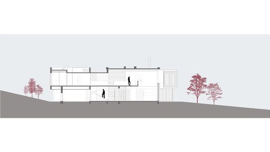 The third volume is in white masonry and has two decks: the lower concentrate the service area, kitchen and toy library. In the upper is the double bedroom, apart from the others, with a large bathroom and closet. The detachment of the elements set up openings that allow sunlight to bathe the southern part of the house. Finally, interconnecting each of them, a large catwalk optimizes the horizontal and vertical movement between spaces, remembering the movement of a hotel.