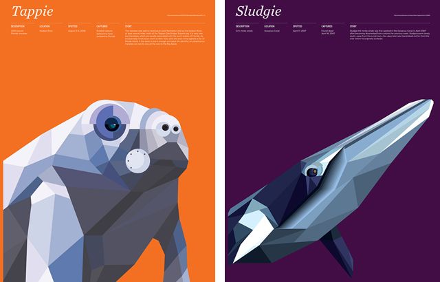 Designed with inspiration coming from the recent discovery of a dolphin in the New York canal, this series of geometrically abstracted animal illustrations have been created by Thomas Wilder of MGMT, a small studio part of DUMBO.