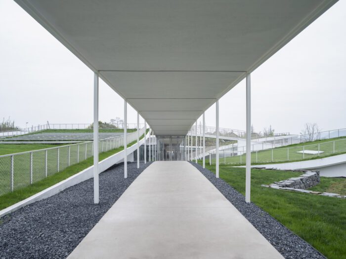 This landscape is not merely visual. While the design employs a traditional courtyard-and-corridor typology, it also renders the courtyards as walkable topographies. Whether the center is open or closed, visitors can roam freely along the upper surfaces of the courtyards and corridors, experiencing the architecture as if moving through the fields themselves.