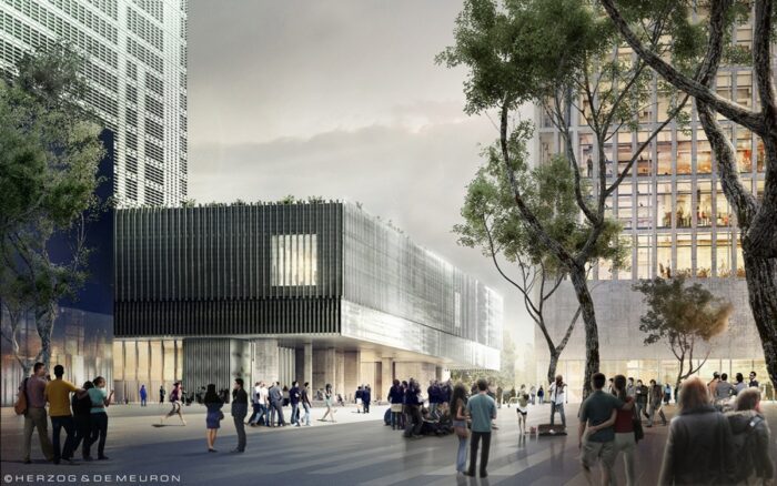 All eyes are on M+ as it plans to open doors this year. M+ is a museum of “visual culture” based in the West Kowloon Cultural District of Hong Kong, an up-and-coming area for artists and art-goers to congregate in the Asian capital. According to the museum’s mission, it plans to “focus on 21th and 21st-century visual culture, broadly defined, from a Hong Kong perspective and with a global vision.” Its design is done by Herzog & de Meuron in partnership with Farrells, which is a winning design among some big-name finalists such as SANAA, Renzo Piano Building Workshop, Shigeru Ban, Snohetta, and Toyo Ito. Its design is conceived of as an inverted T shape. Its typology combines podium and tower into introducing many art-related programs to the compact site.
