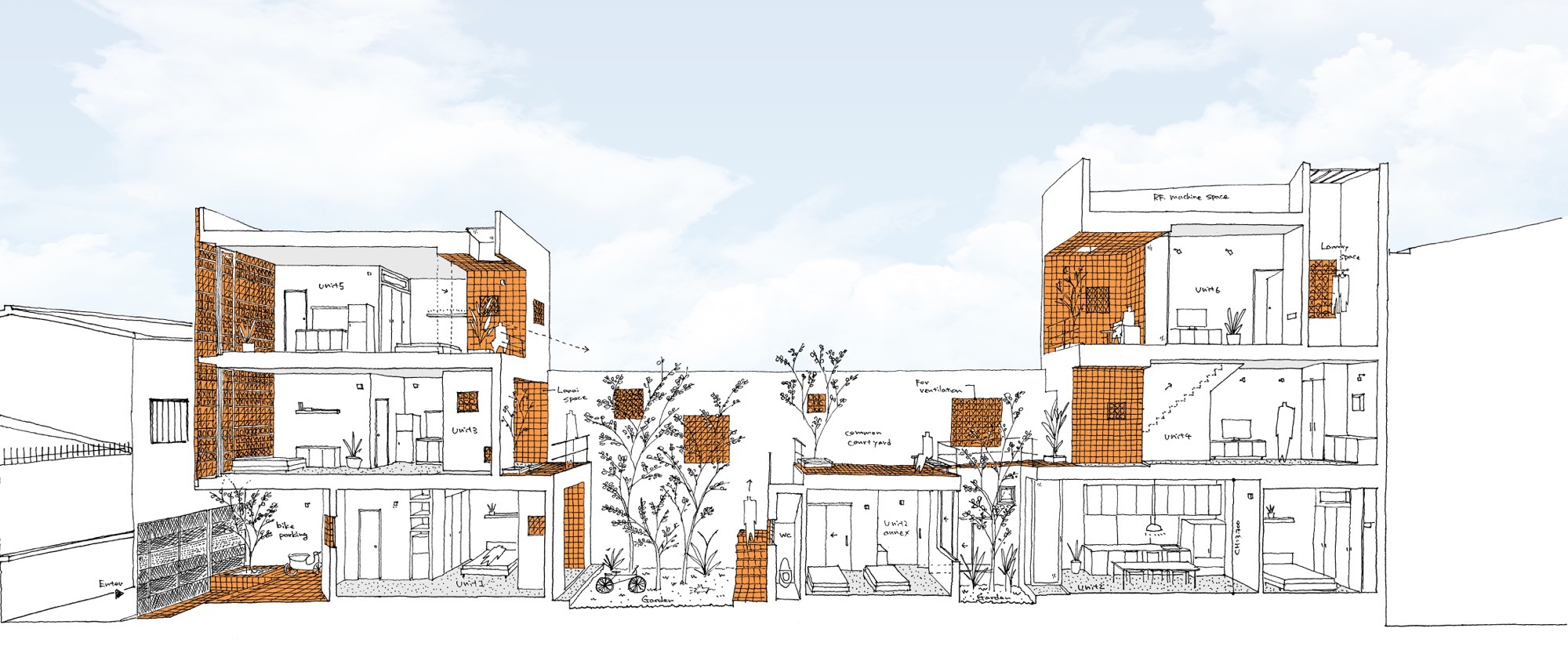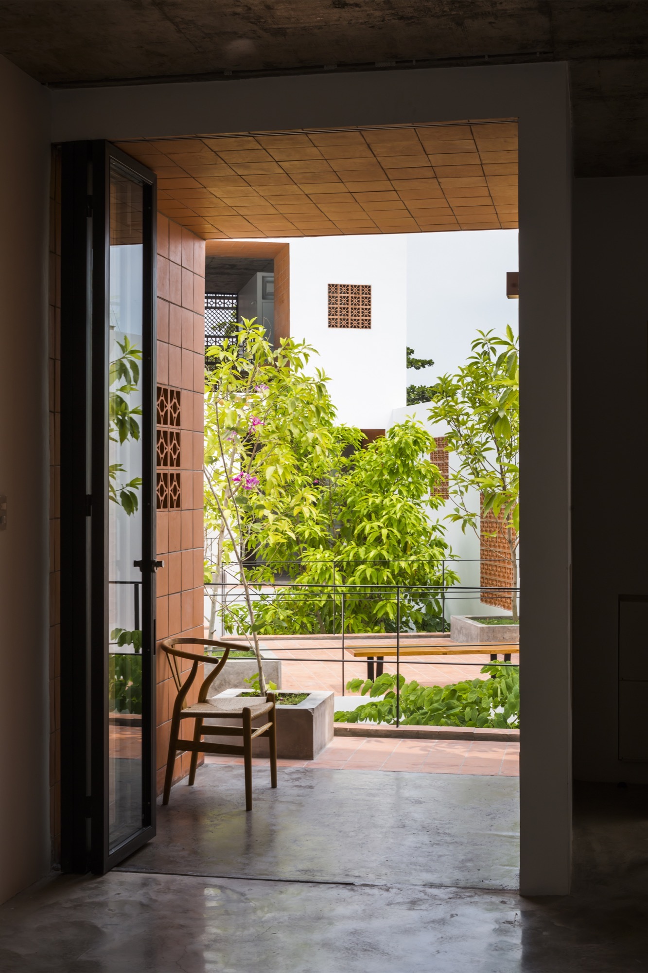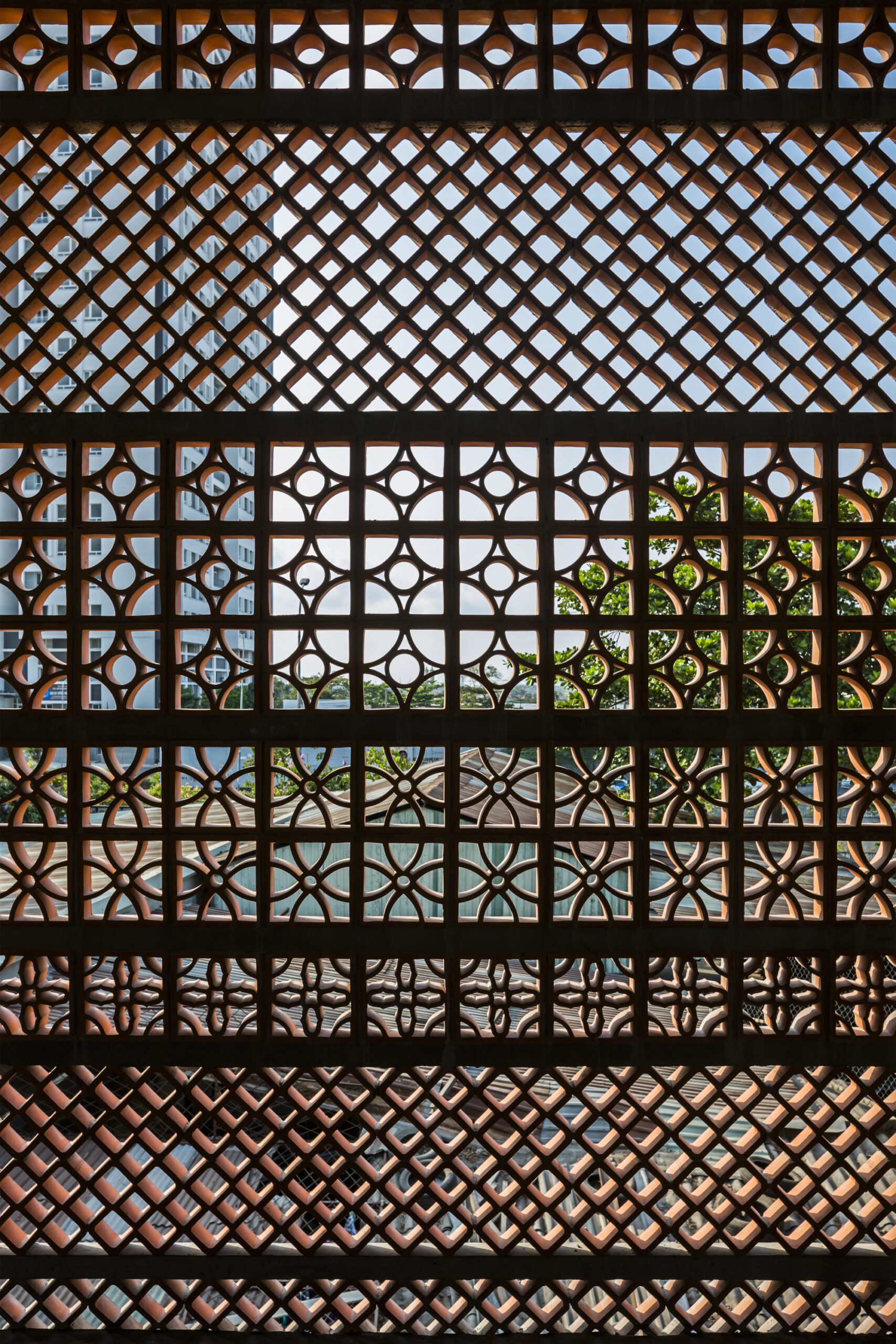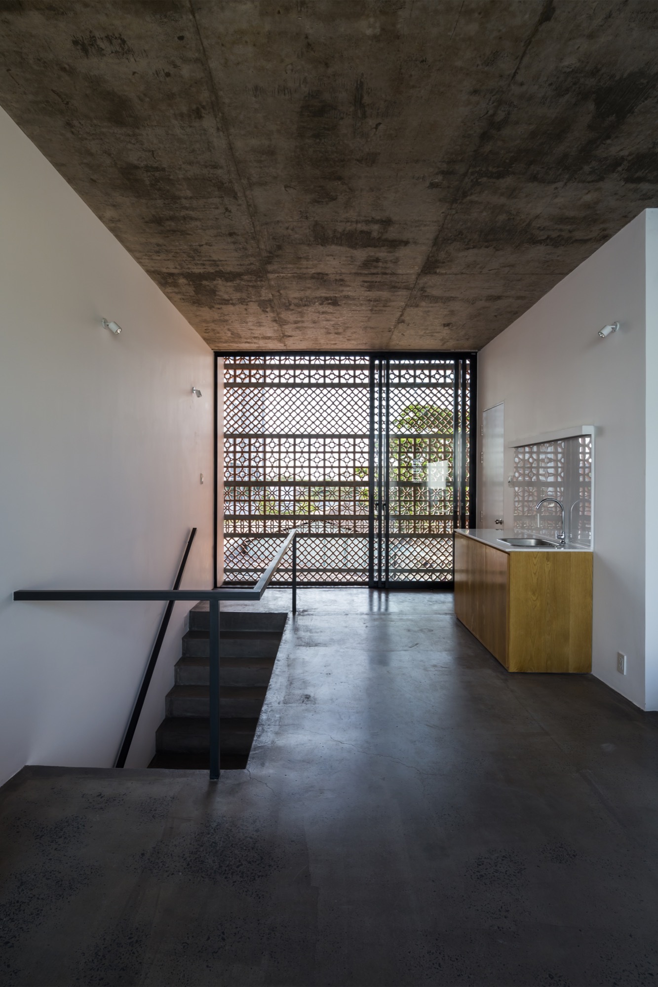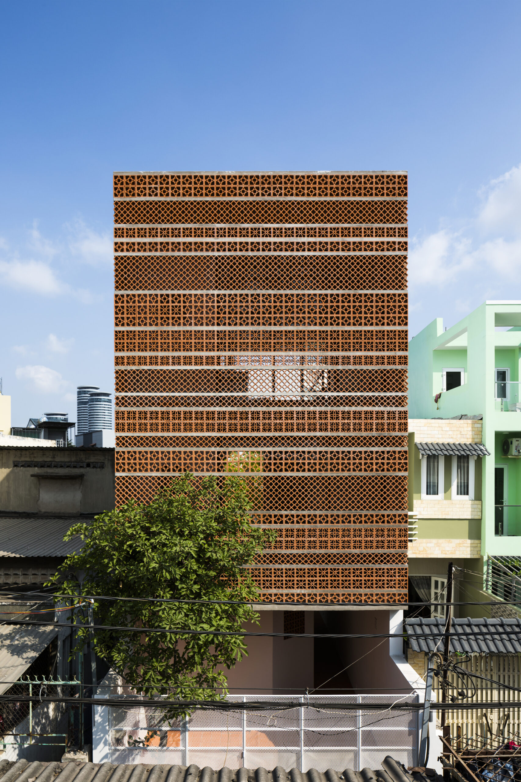 According to the client’s request, we tried to utilize the local materials in Vietnam for low cost construction. The terracotta screen block is very popular in Vietnam. We combine different patterns of blocks, creating a characteristic Façade and outside space in the courtyard, which makes use of natural ventilation, passive cooling by shading, while simultaneously enhancing occupant security.