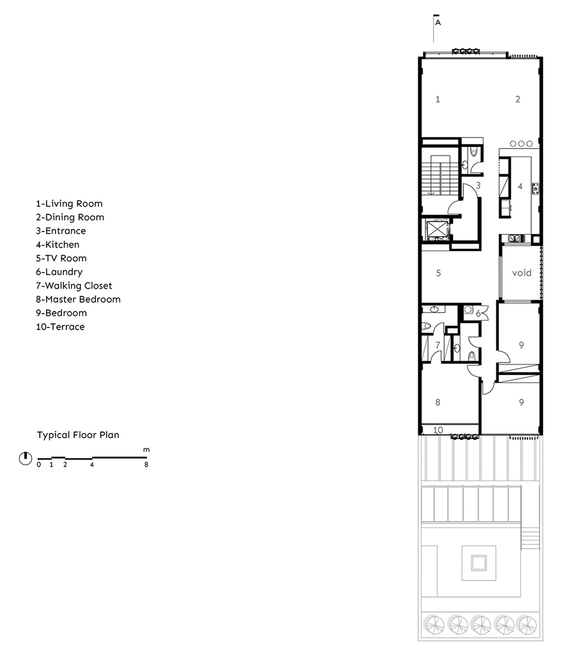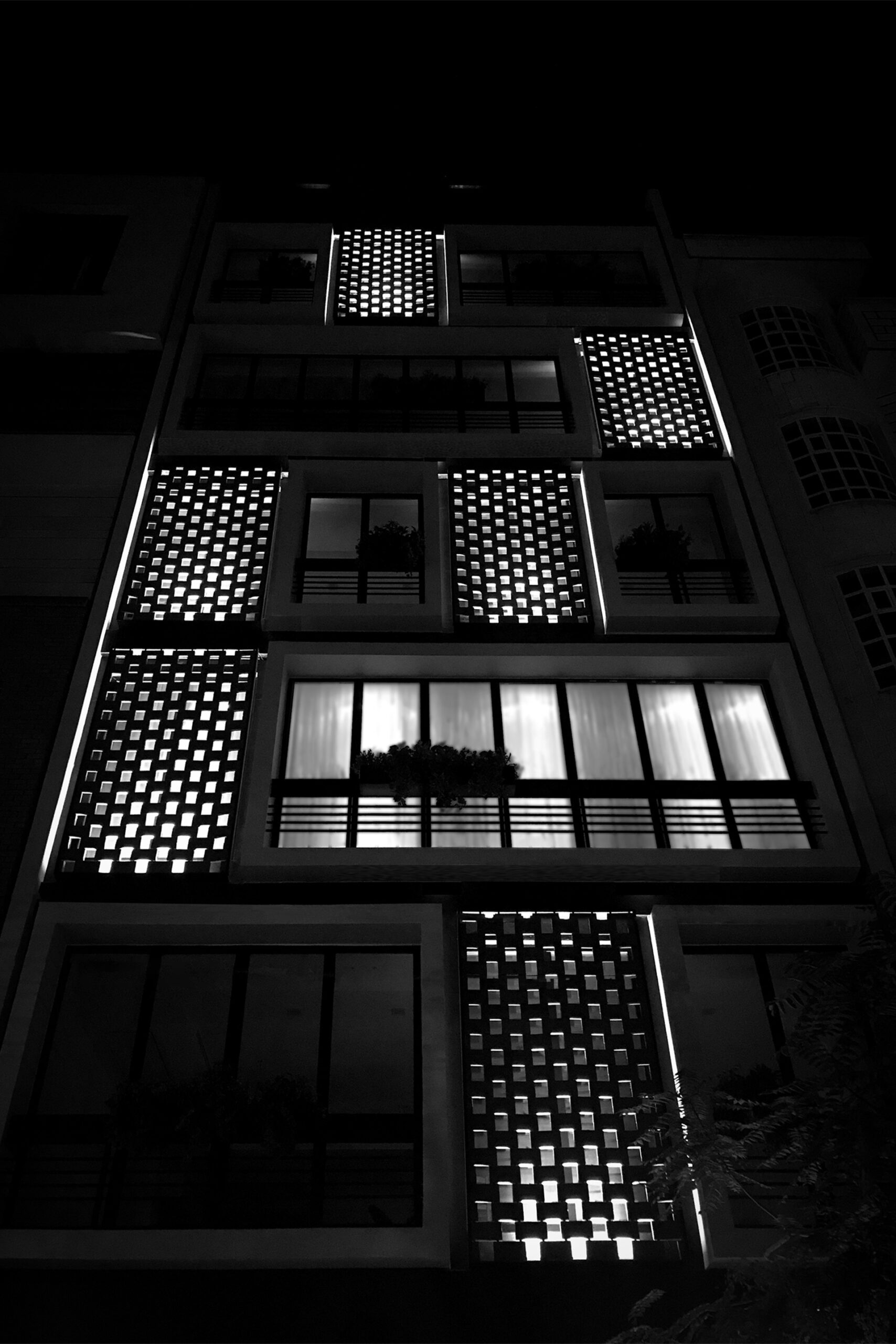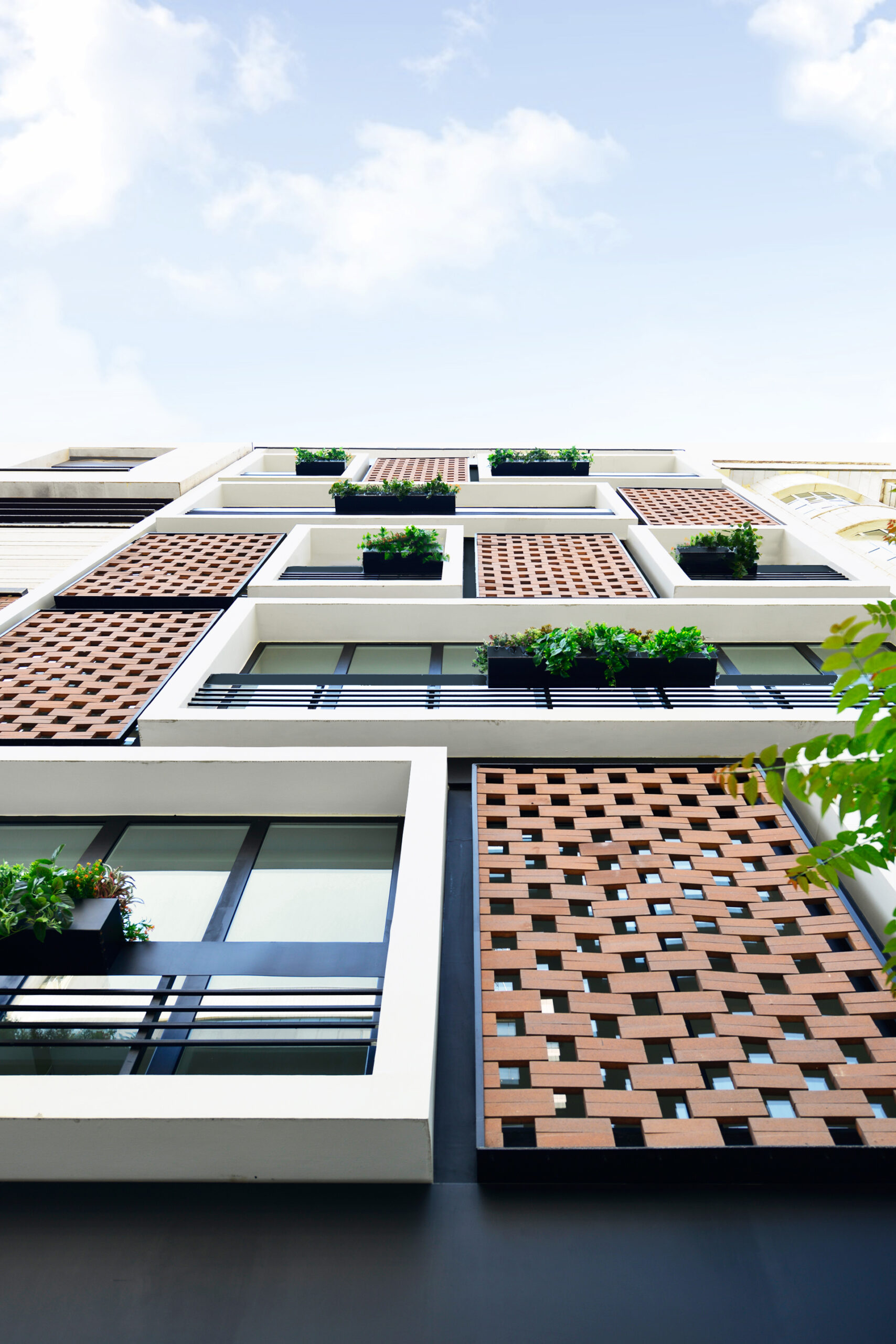 During a different time of a day, the brick patterns create a beautiful effect of light and shadow inside each unit. This phenomenon creates variety, increases space quality and provides visual and heat comfort for residents while it plays an effective role in energy saving. Rooftop garden and modular flower boxes in front of the windows are designed to improve environmental quality while accentuating the aesthetic values.
