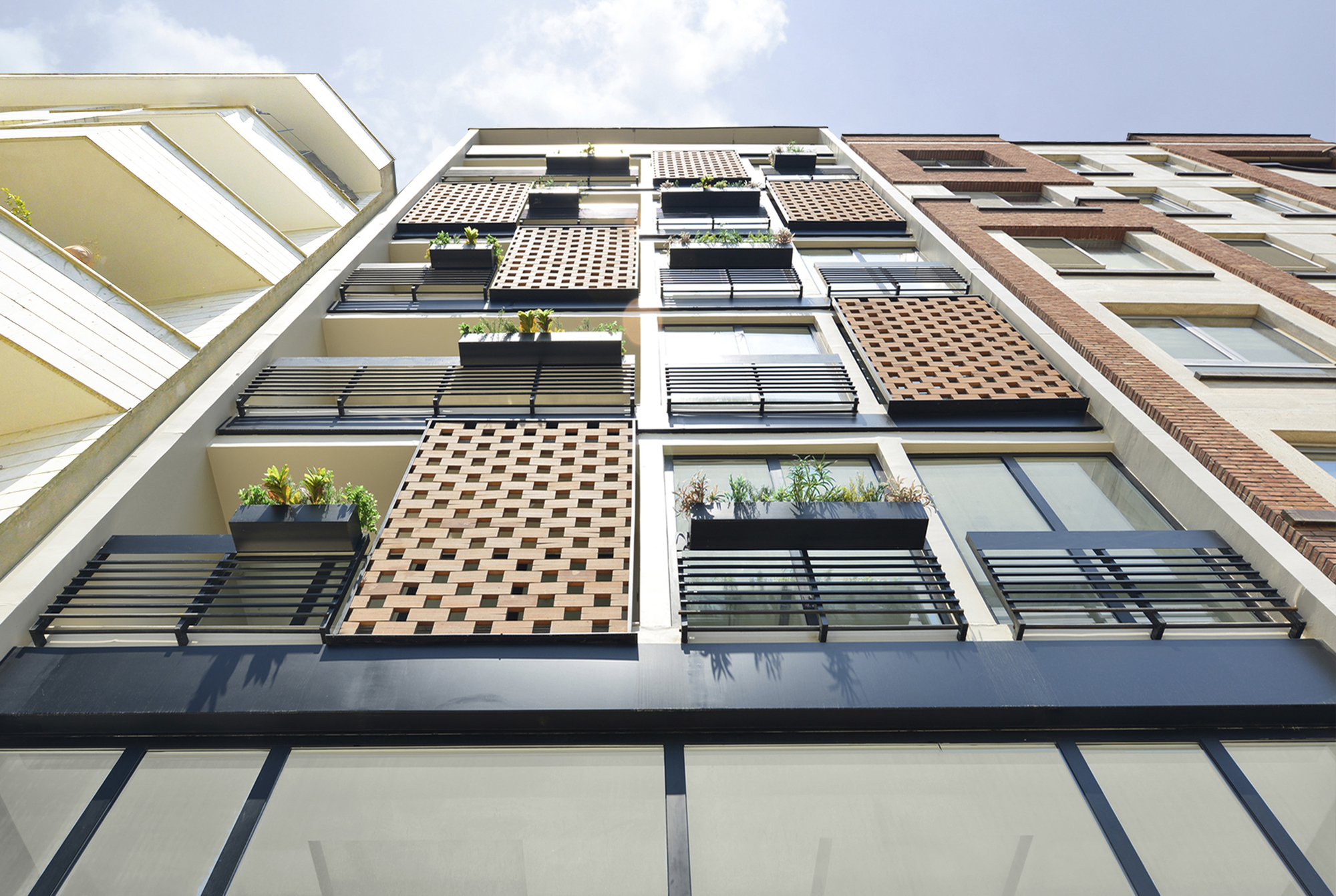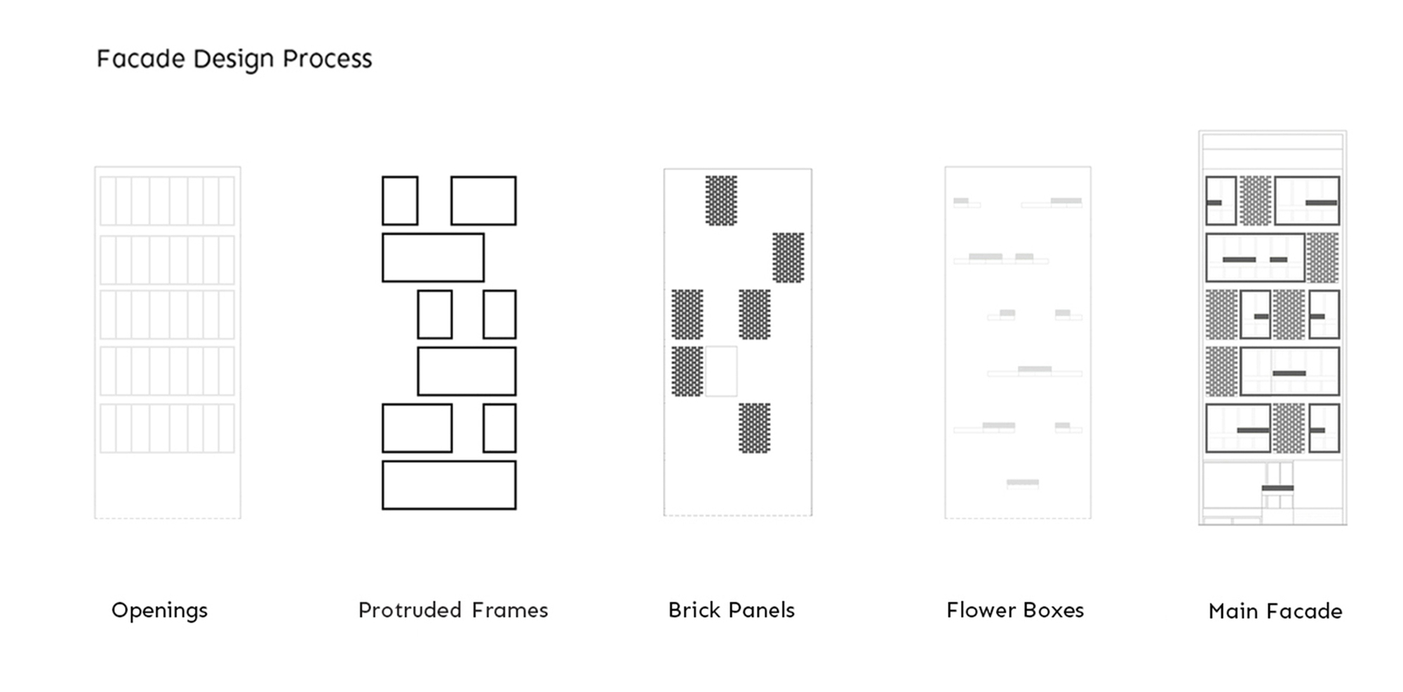 The main design idea behind Apartment no.135 was to revitalize the lost heritage and to give a modern interpretation of the old concepts. Thus, brick – a traditional building material – was used in this project. A combination of fixed brick panels and protruded modular frames are used to create a modern and dynamic facade. The brick panels in front of the windows act as a temperature buffer by filtering natural light.