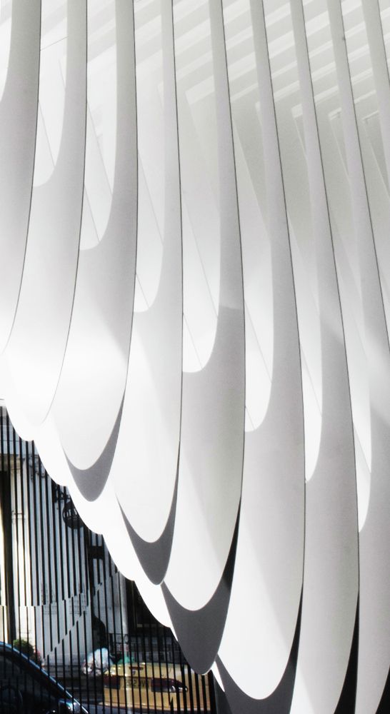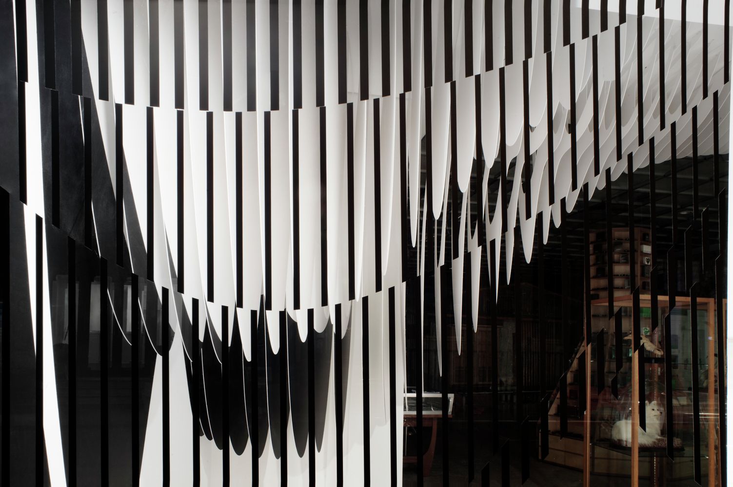 The name given to the artwork was Aqua, taking reference from the London Aquatic Centre, in both name and form. It takes a parametric approach in design, using repetition and scaling to creating a form as fluid and free flowing as waves.