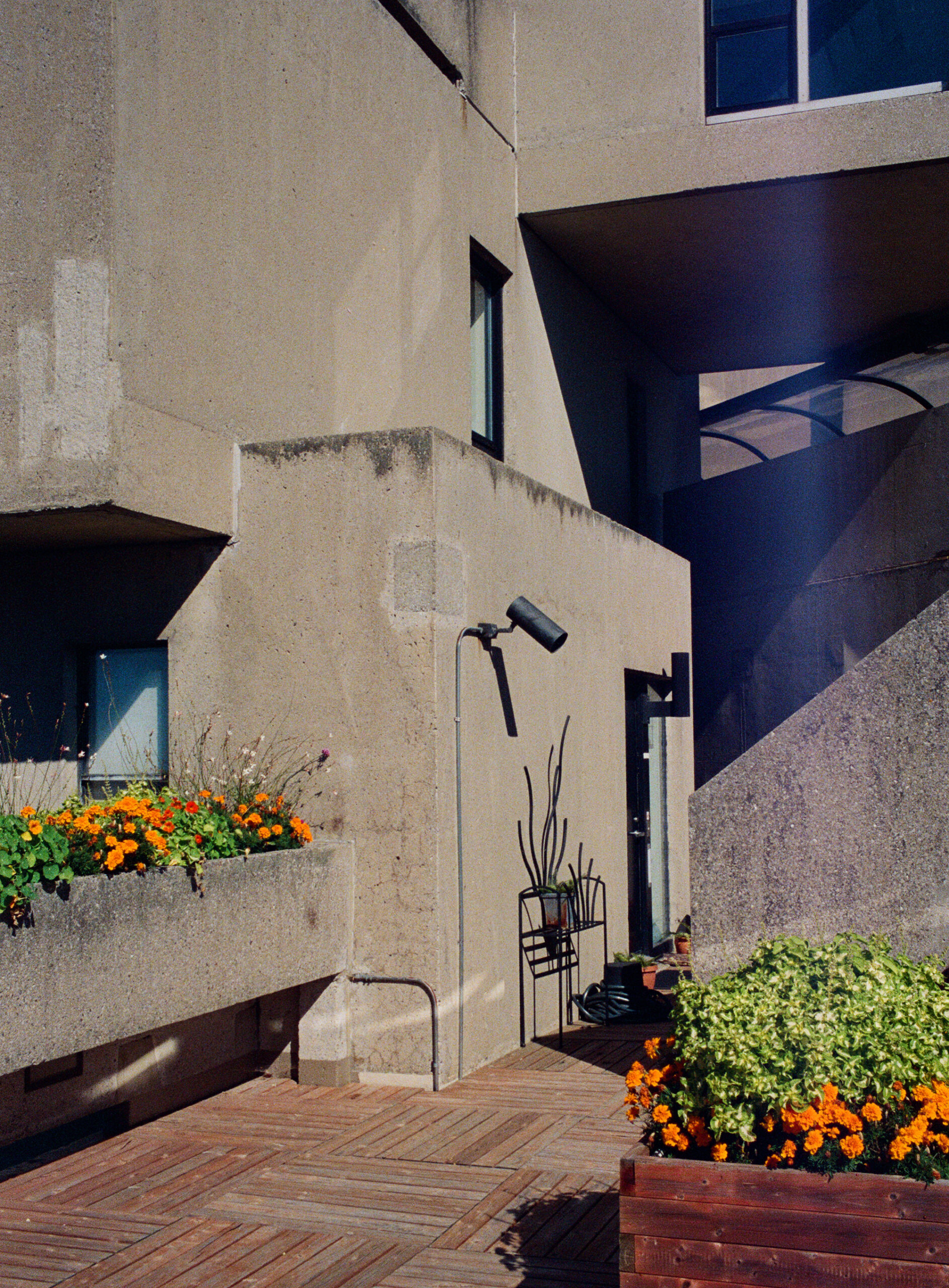 By stacking concrete “boxes” in variant geometrical configurations, Safdie was able to break the traditional form of orthogonal high rises, locating each box a step back from its immediate neighbor. This ingenious method provided each apartment with a roof garden, a constant flow of fresh air and a maximum of natural light: qualities which were unprecedented for a twelve story apartment complex. Habitat 67 thus pioneered the integration of two housing typologies—the suburban garden home and the economical high-rise apartment building.