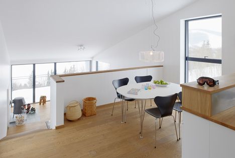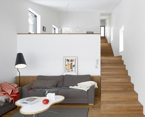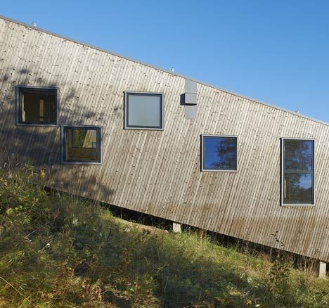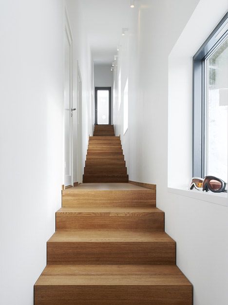With 31 stairs from the lowest point in the house to the highest, these buildings are not that different from a normal 1½ storey house with two staircases. But given the urban conditions of the area, to build a traditional house would have limited the amount of exterior views for the occupant and would have caused the structure to be partially buried in the ground. Just like how mountains challenge skiers, mountains can challenge architects, and Waldemarson Berglund answered this challenge with these simple residences, showing that mountains don’t have to be tamed forcefully.