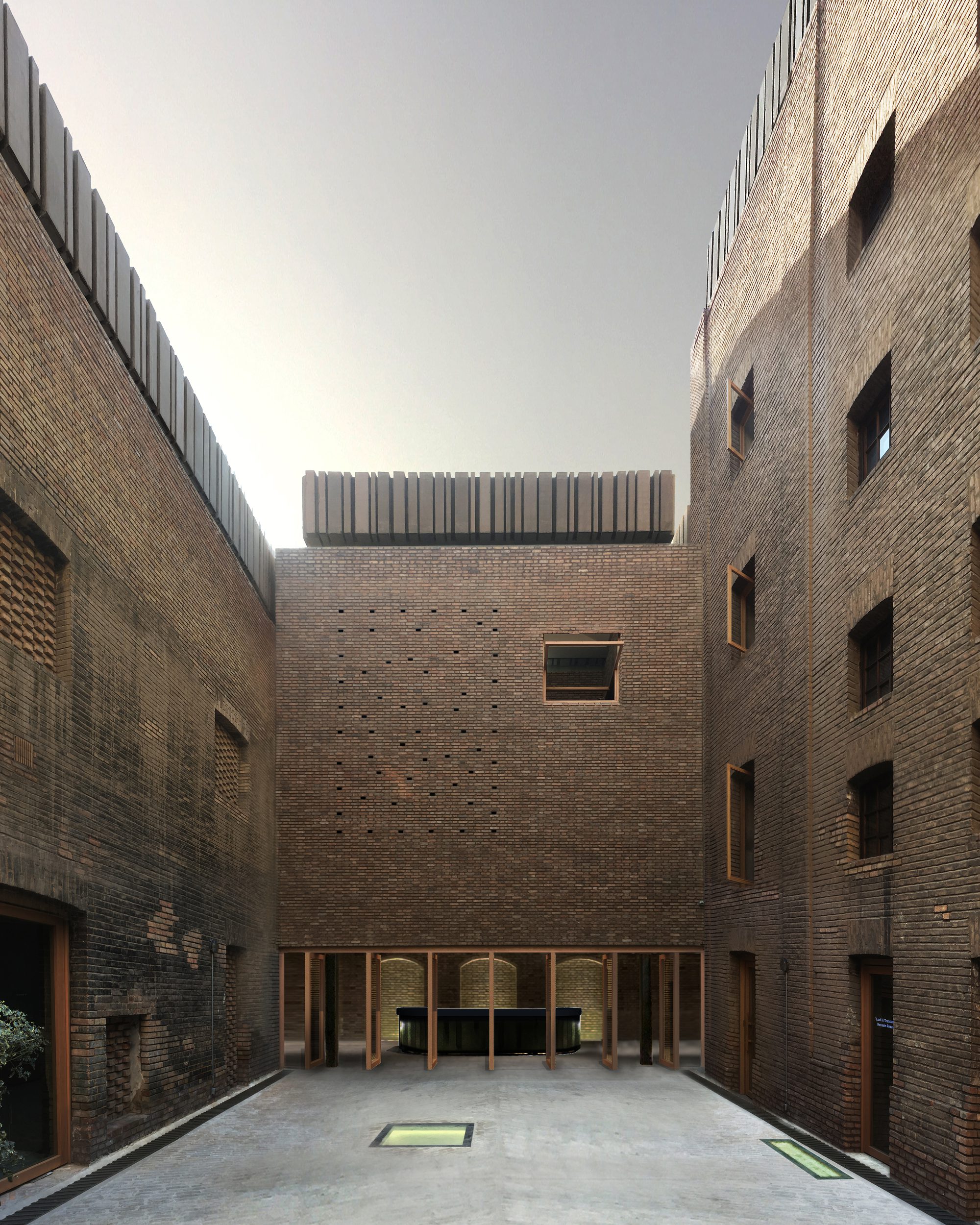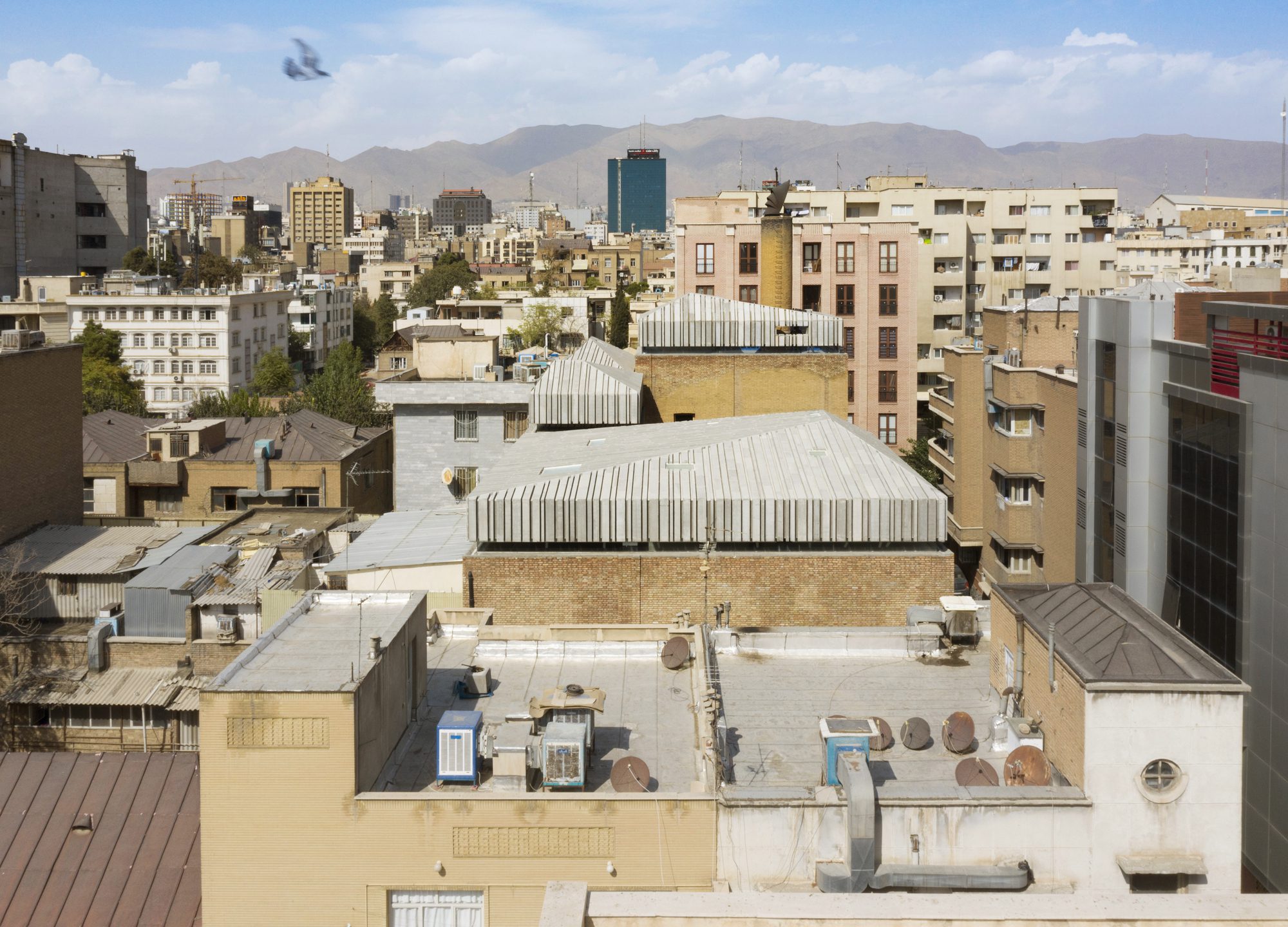 The new underpinning structure, designed by structural engineer Behrang Bani Adam, allows the architectural expression to maintain a restrained conversation between the old metal (halabi) roofs of Tehran houses and new floating (concrete) roofs of the museum that are the only new addition to the exterior form of the original factory. The design taps into the DNA of traditional local metal roofs and rewrites them as five performative floating roofs: each considering an unrepeated lighting atmosphere, for the cultural program underneath it.