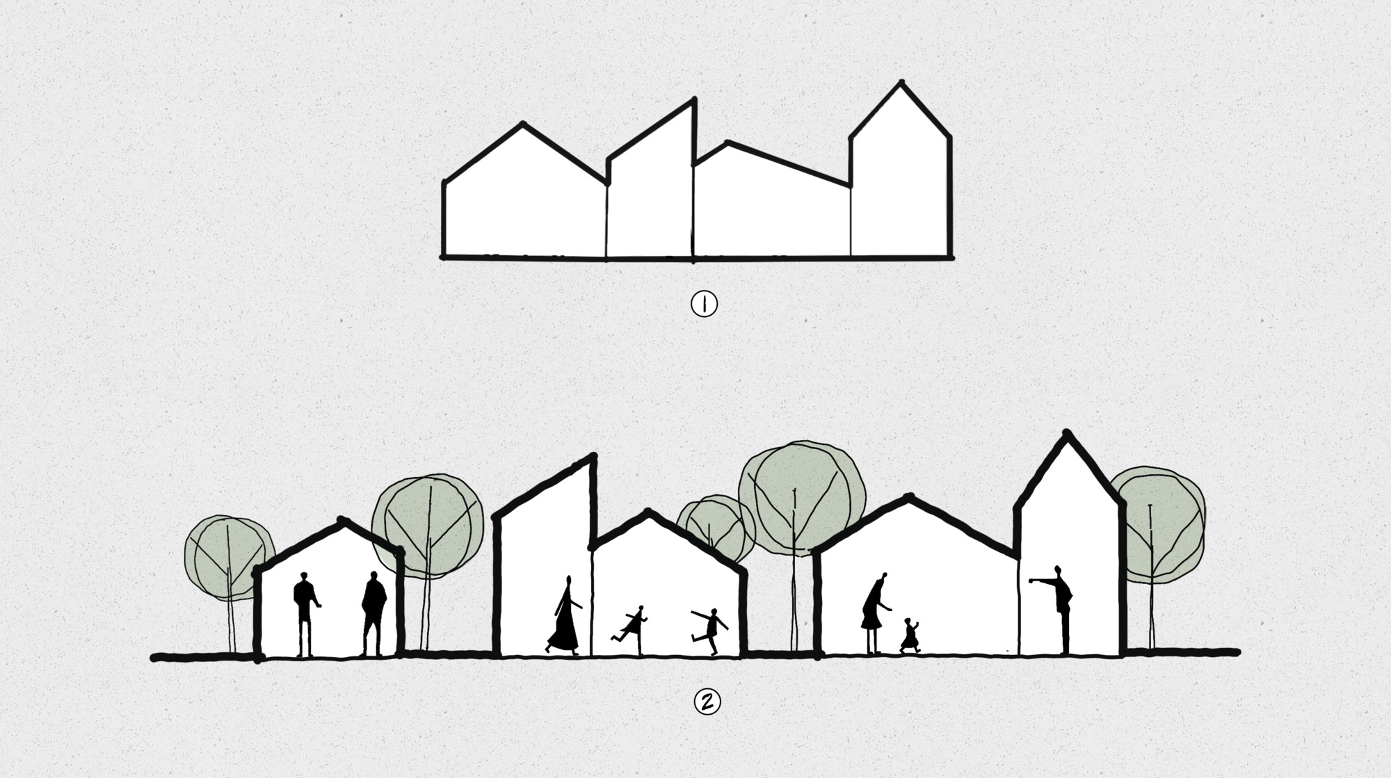 In order to cope with the poor ventilation and save energy, the solution of 2 courtyards surrounding the apartments is proposed, which helps improve the microclimate of the building. This also helps to keep all rooms airy. During the day, the corridors are visually shortened compared to their actual lengths thanks to the shared light source. At the same time, wood jalousie windows create successful wind ventilation with high thermal comfort and adequate fresh air for the ventilated spaces.