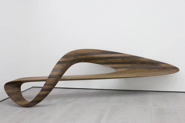 The Around the Corner West: Bench by Amanda Levete Architects is simply elegant. Constructed of wood which is first layered and then shaped, its form seems to defy gravity. This is achieved through a hidden fixing point located on the backside which secures into the wall. The eye continuously moves across the fluid form, which is reminiscent of the iconic infinity symbol.