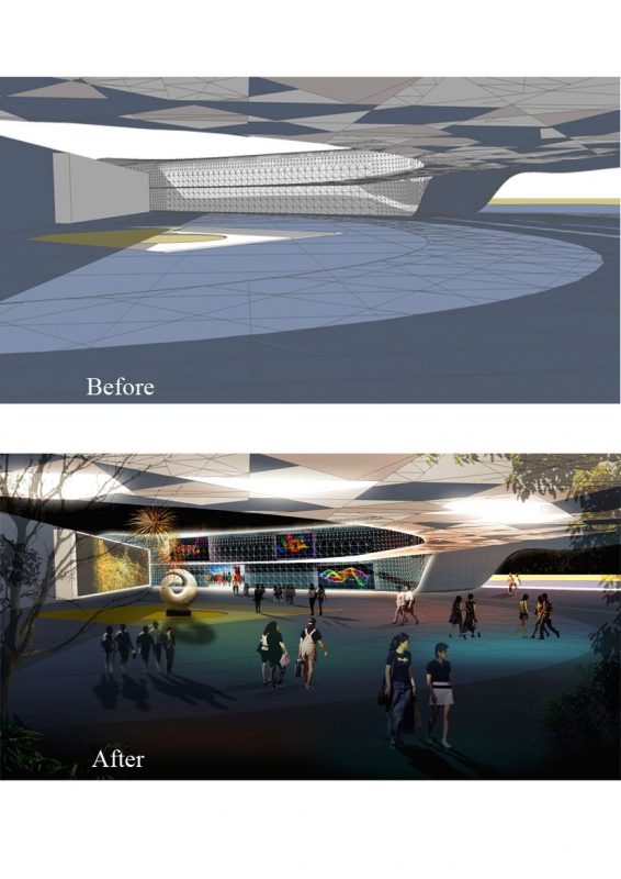 Art & Design Hub, Visionary and Real, Creative and Simple.. Ezz Osman from College of Fine Arts, Alexandria, Egypt, shared with us his vision of creating different nodes (hubs) all over the world to connect artists & designers from different contexts. The “Art & Design Hub” is an interactive environment for exchanging ideas and experiences between creative people. For these purposes, The hub is equipped with large scale media screens and different communication devices that enable broadcasting events in real time on the building exterior.