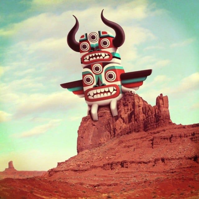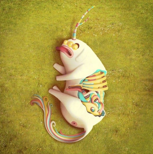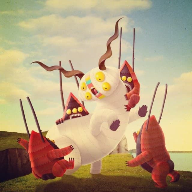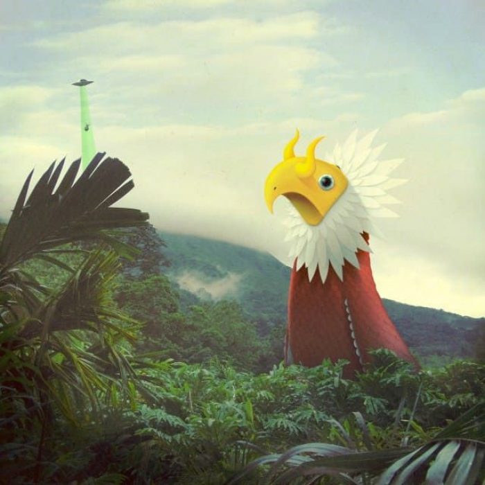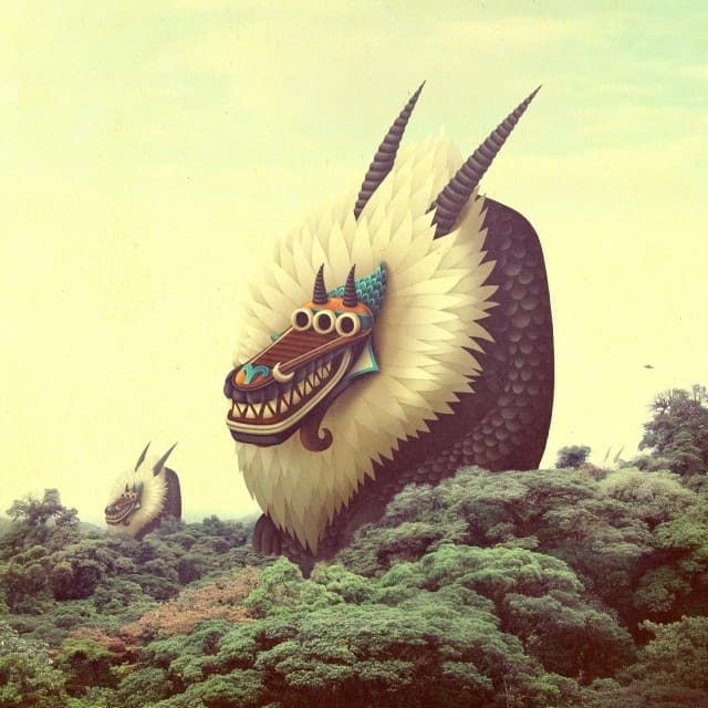 Juan Carlos Paz, better known under the pseudonym Bakea is an illustrator and art director from Madrid who enjoys taking photographs of landscapes to insert then fantastic and colorful creatures.