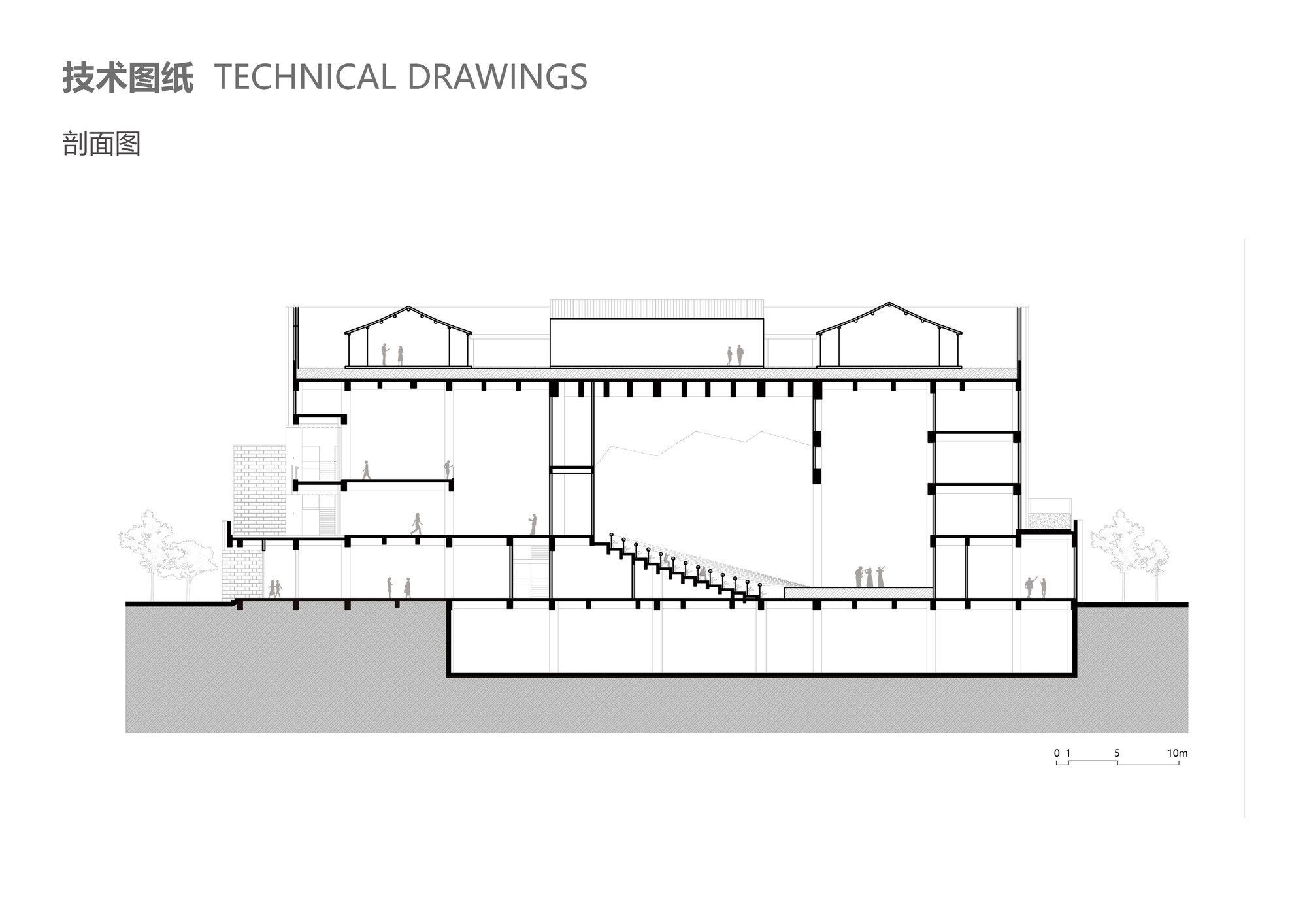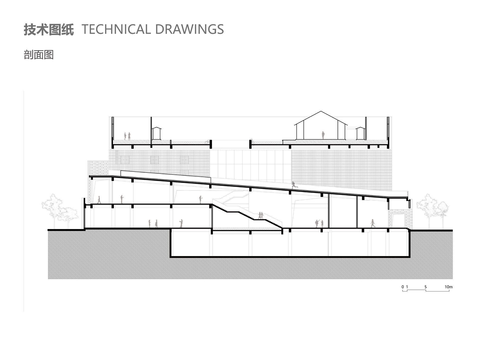 Drawing inspiration from masterpieces like “Dwelling in the Fuchun Mountains” and the “Map of the Imperial City of the Southern Song Dynasty,” the design creatively integrates the continuous landscape with the city walls, offering a unique spatial experience through architectural techniques. The abstract deduction from “Dwelling in the Fuchun Mountains” is the thematic inspiration for the main building facades on the north and south sides, stretching nearly 600 meters. The Fuchun River, which encapsulates the essence of Jiangnan scenery around Hangzhou, instills a sense of recognition and engagement among the public, fostering rich associations.