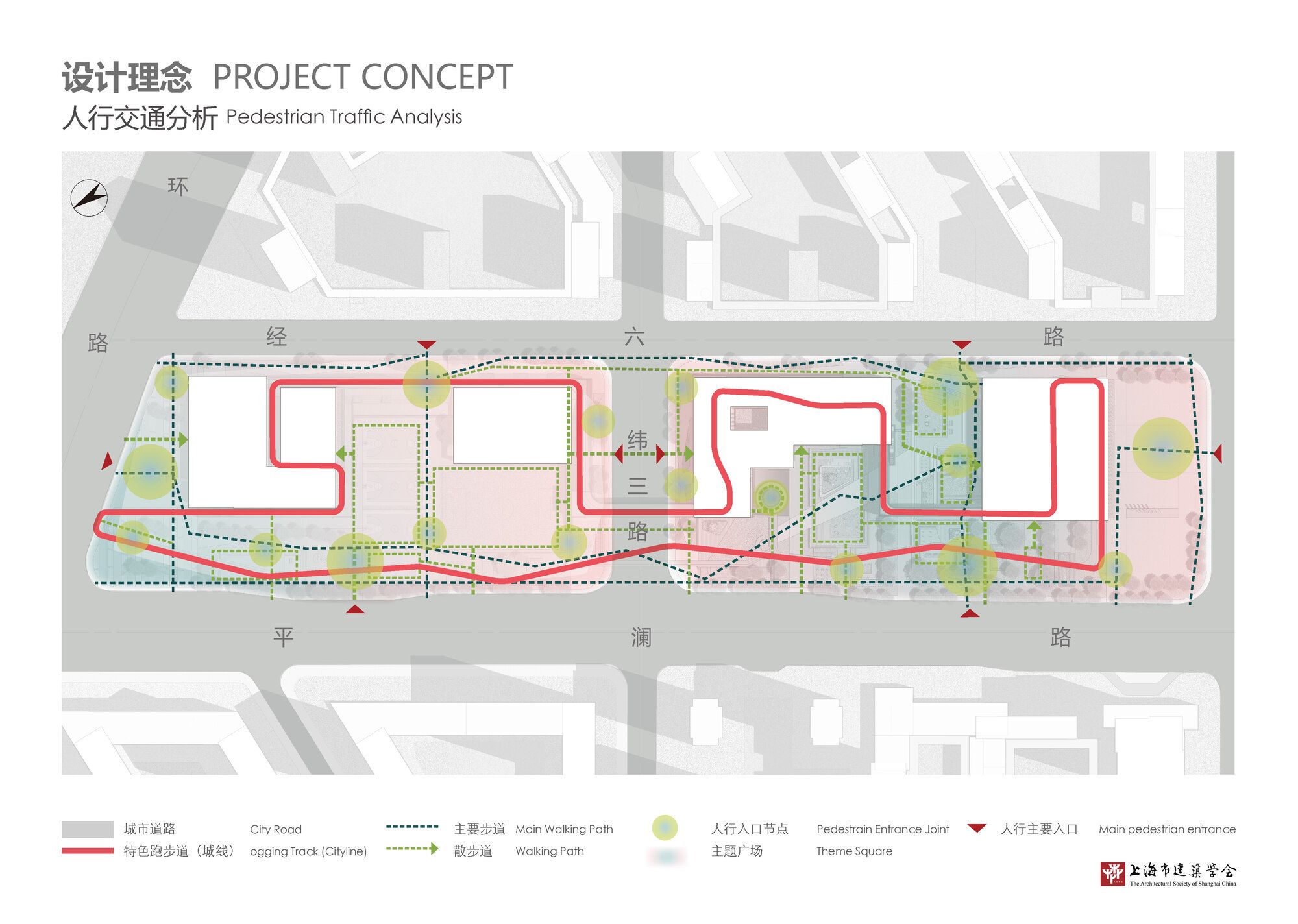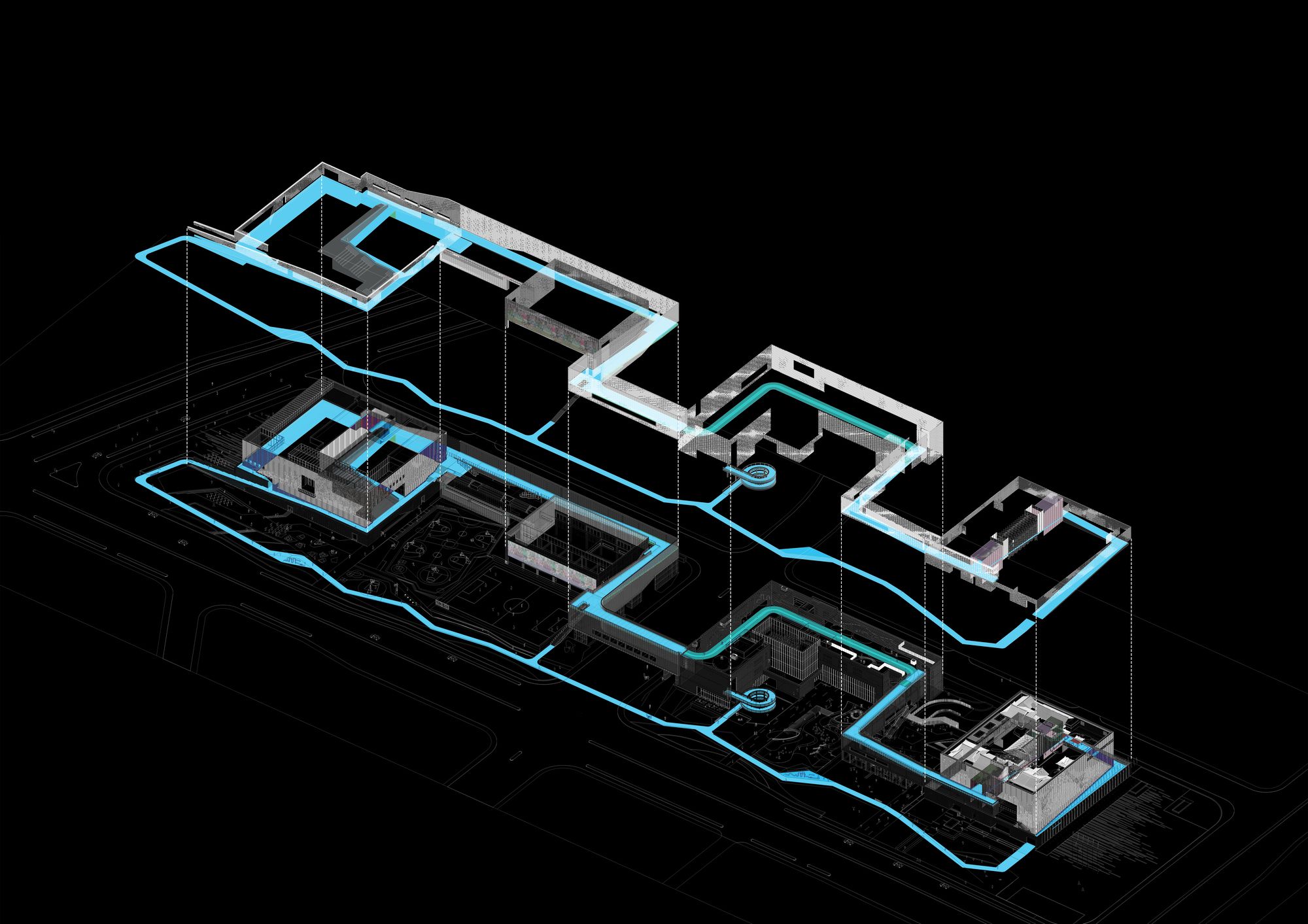 In the context of architectural design on the Asian Games Athlete Village, there are three key considerations. Firstly, the method leverages the travel routes as a guiding element to connect spaces seamlessly. A nearly two-kilometer-long runway traverses the entire site, intricately intertwined with the city wall’s design. Secondly, as a foundational element, the city wall establishes various relationships between the travel routes and the wall itself. These relationships manifest under the fence, within the wall, and on the wall, creating a multi-dimensional interaction.