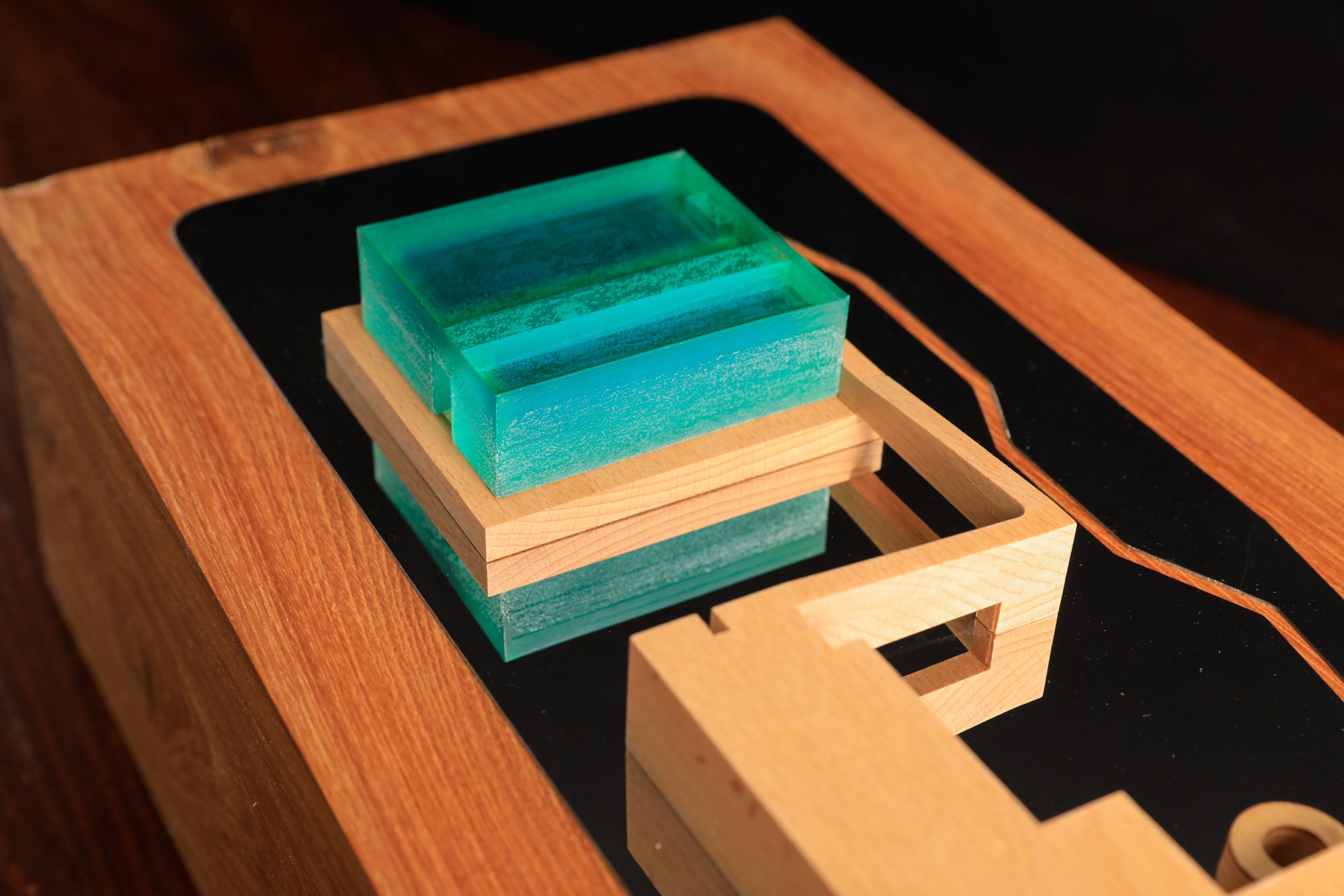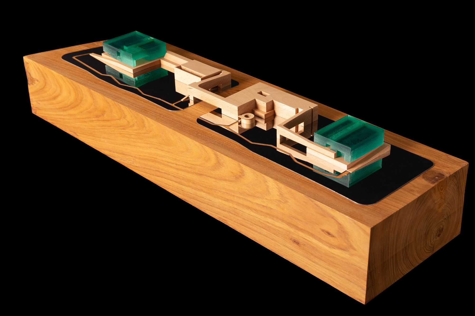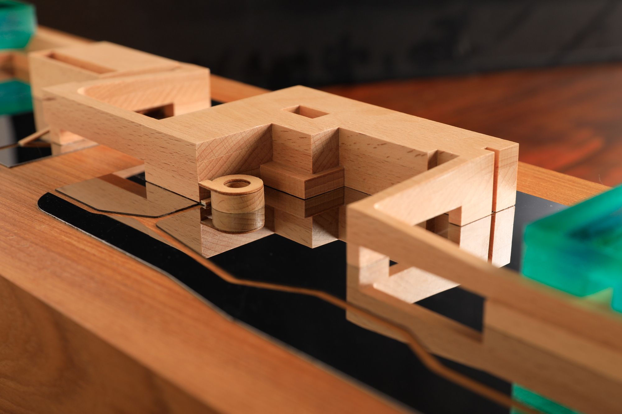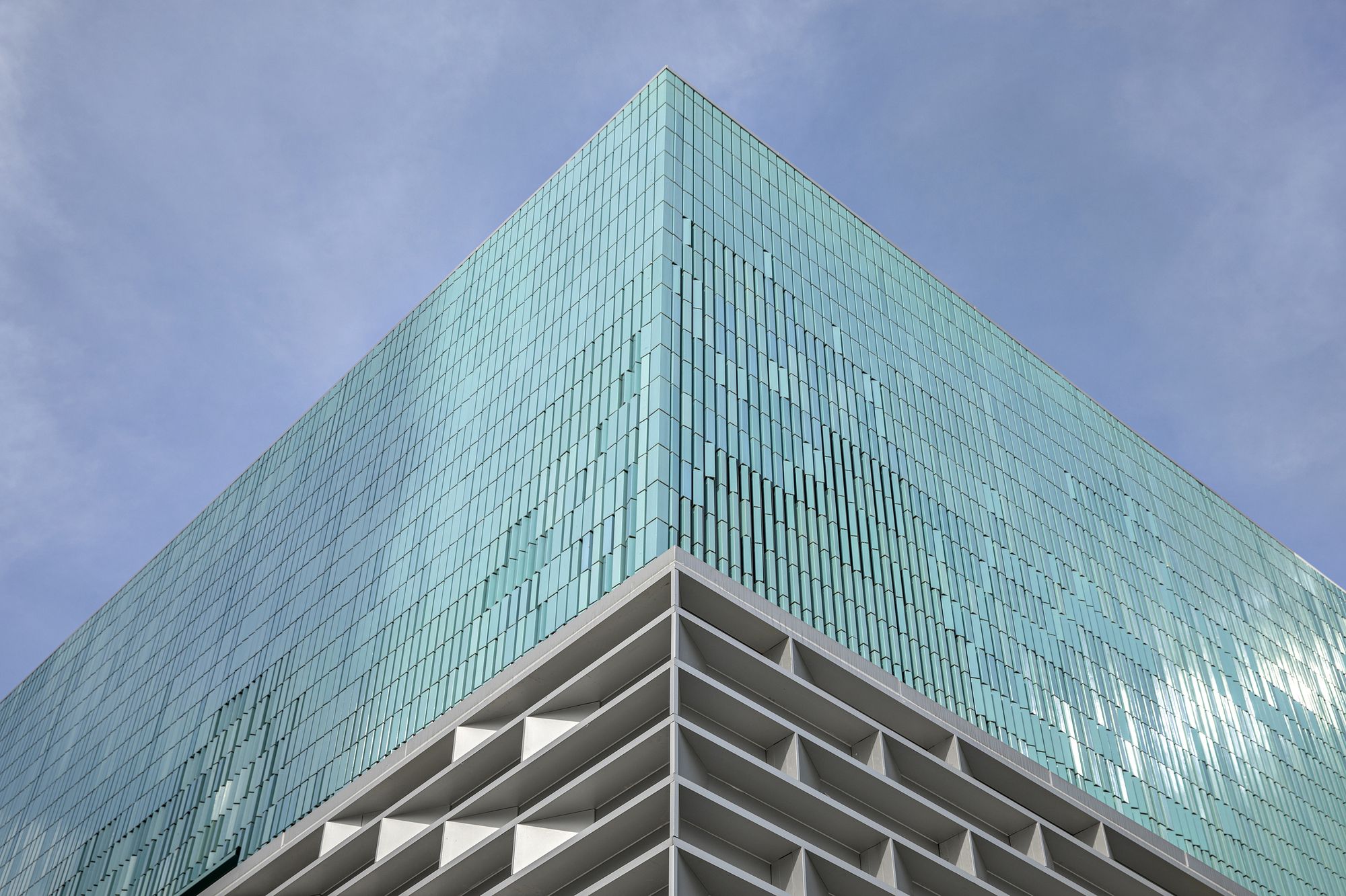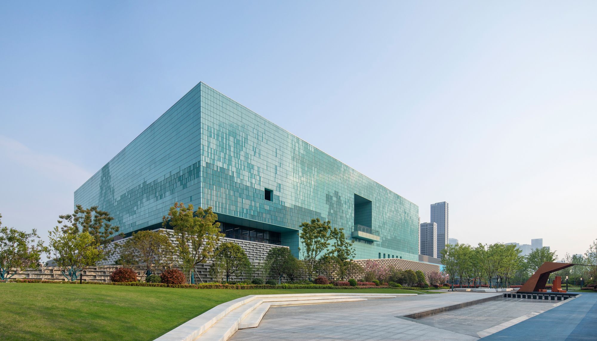 The design approach also considers the significance of “Dwelling in the Fuchun Mountains” as a representation of Chinese traditional culture. Notably, the original artwork is divided into two parts stored on opposite sides of a strait. In a symbolic gesture of unity and well-wishing, the design combines these parts into one cohesive facade. The selection of exterior wall materials for this facade section involved numerous experiments, ultimately leading to the choice of turquoise pottery clay louver blades as the primary materials. The glazed facade achieves both a celadon color and a sensation of jade-like warmth and smoothness. The complex landscape map transforms into four unit modules, leveraging digital design methods.