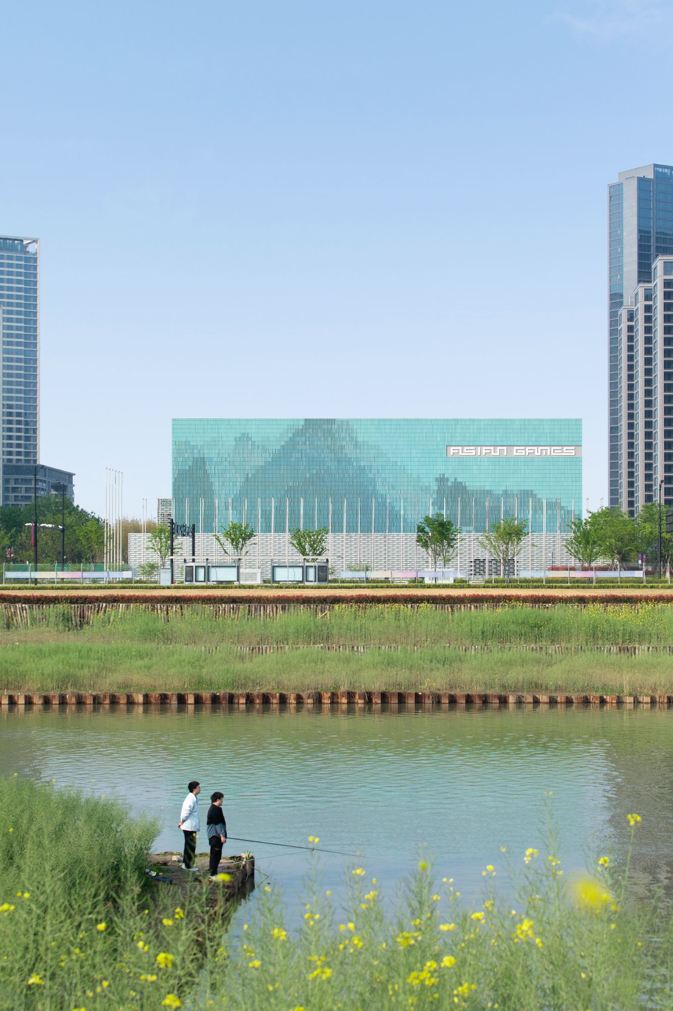 They meander through the city as if traversing a work of art. Driven by the principle of integrated design, the Asian Games Athlete Village embraces an open approach to the public, aspiring to convey its cultural ideals and self-assuredness while shaping the international urban environment.