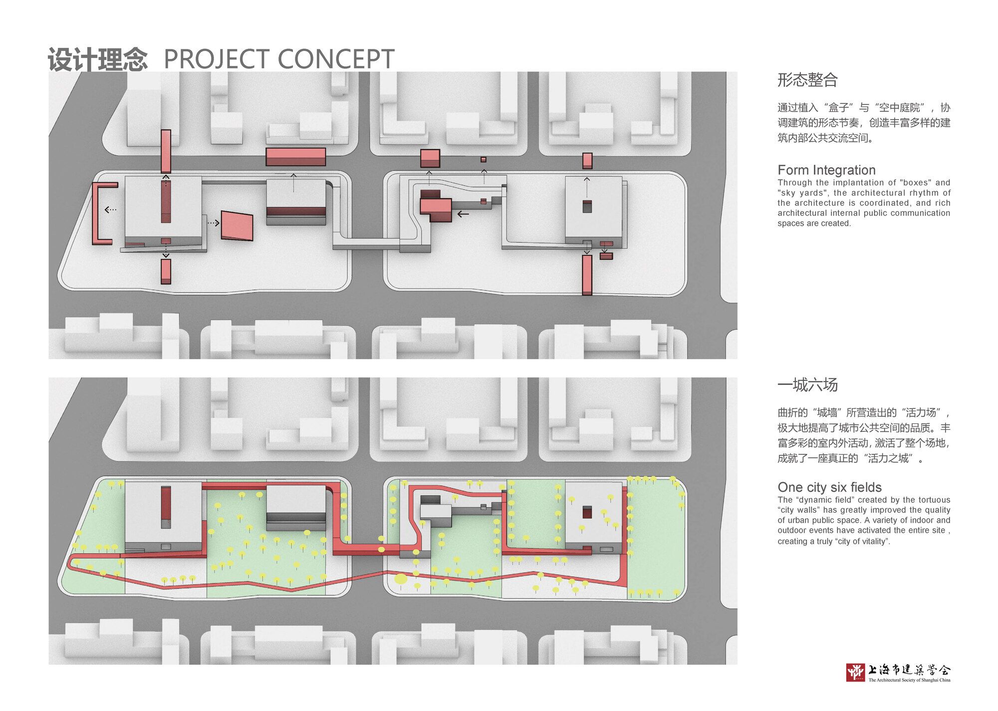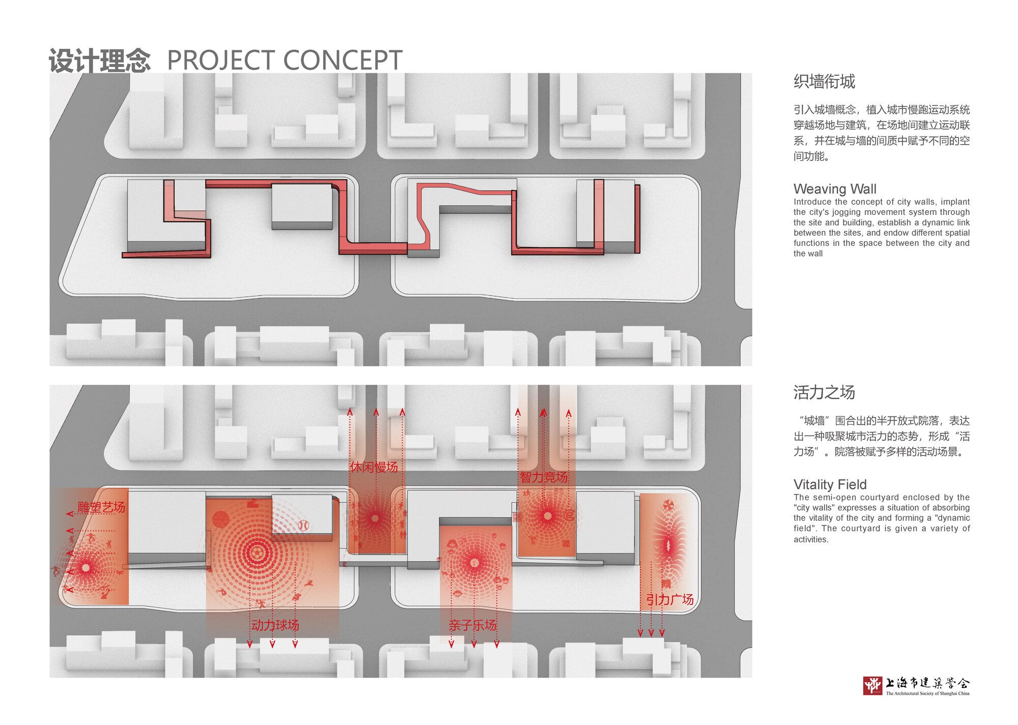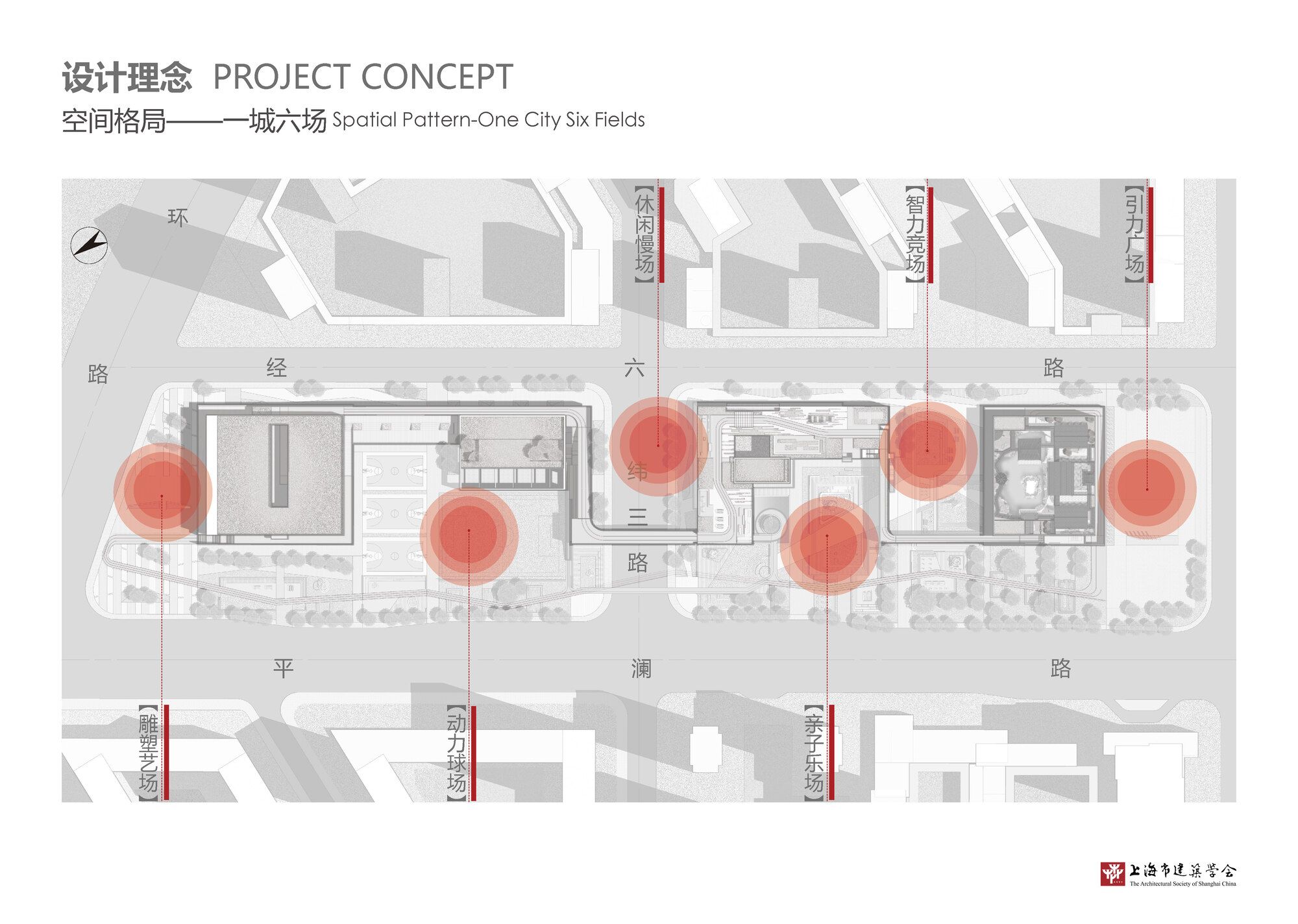 The Asian Games Athlete Village plot is predominantly located on the eastern side, while the western side is designated for subway infrastructure, primarily repurposed for public activities. Urban public passageways link the function-specific structures, creating a cohesive overall layout. Within the six open spaces, each oriented in distinct directions and enclosed by corridors and four buildings, six dynamic fields are established, each boasting particular themes generated by the combination of adjacent building functions. This results in an intricate interplay between the building and the site, manifesting a semi-open configuration. Each location serves a unique purpose, offering a varied interface to the city, ultimately shaping the distinctive spatial qualities of “One City with Six Fields.”