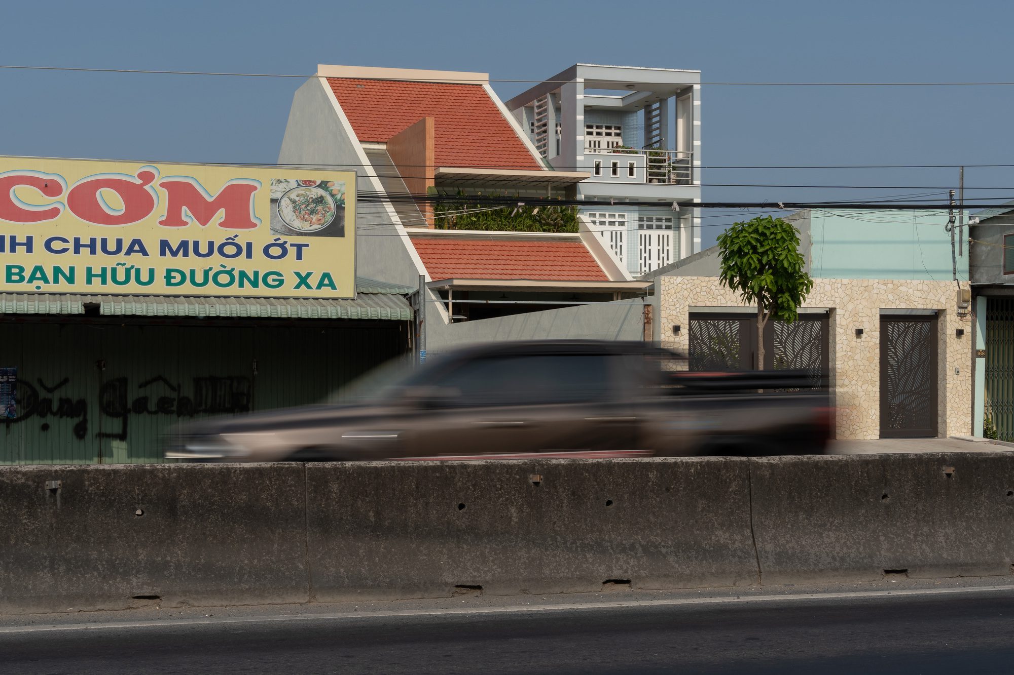Aunt Four’s House, The house is a three-generation family residence located in the rural landscape of Long An, Vietnam. Positioned along a busy national highway, the site presented two significant challenges: traffic noise and fine dust from constant vehicle flow. The design response was to create a layered system of green buffers that both protect the living environment and evoke the spirit of the traditional Southern Vietnamese garden house.