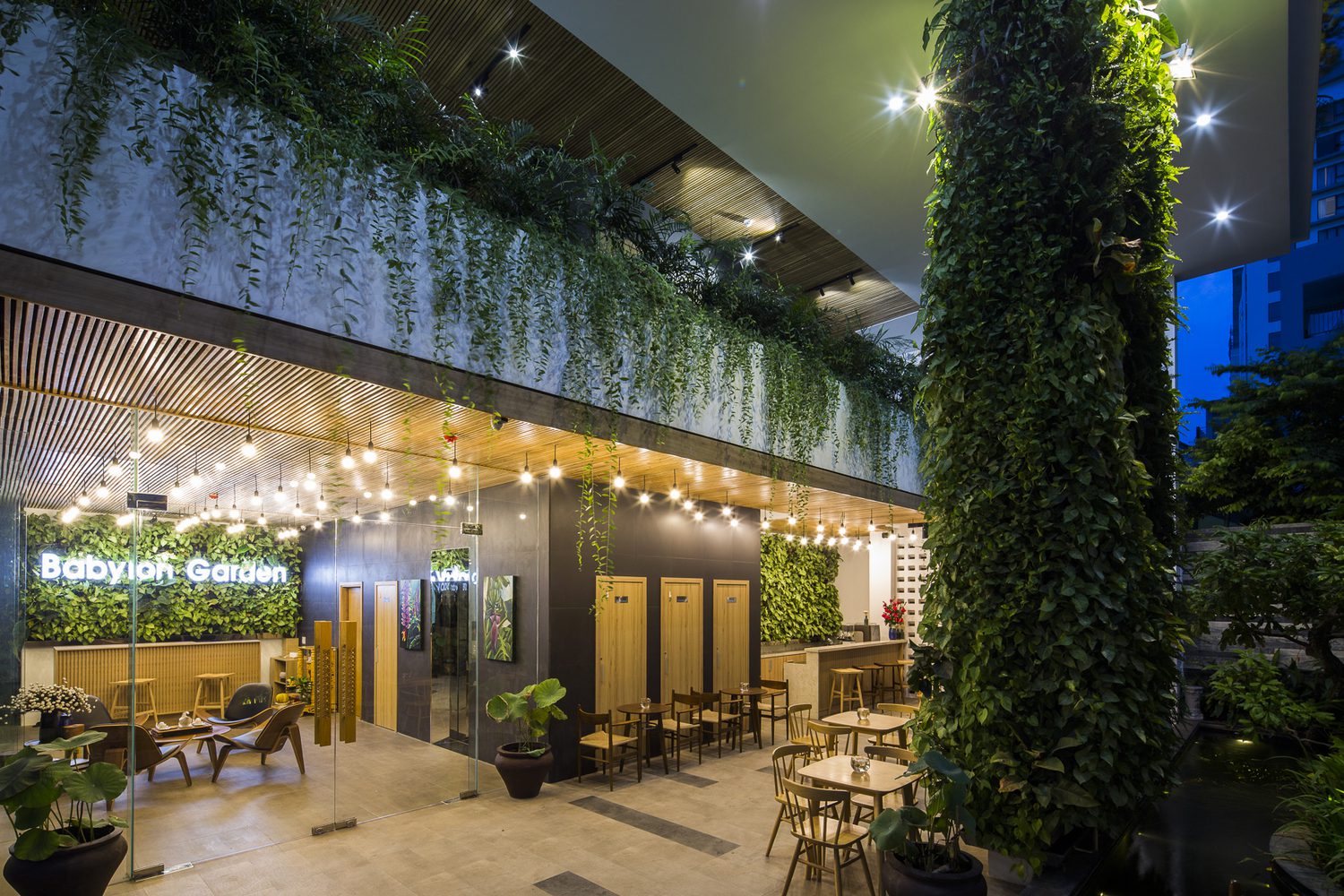 Babylon Garden is located in a crowded coastal hotel zone near the most popular beach in Danang. Set 25 meters down a small street; it is alluring due to its modern green appearance as an oasis while everything nearby is big and mundane. It offers a serene natural experience while only a few steps from the hustle and bustle and every service travelers require.